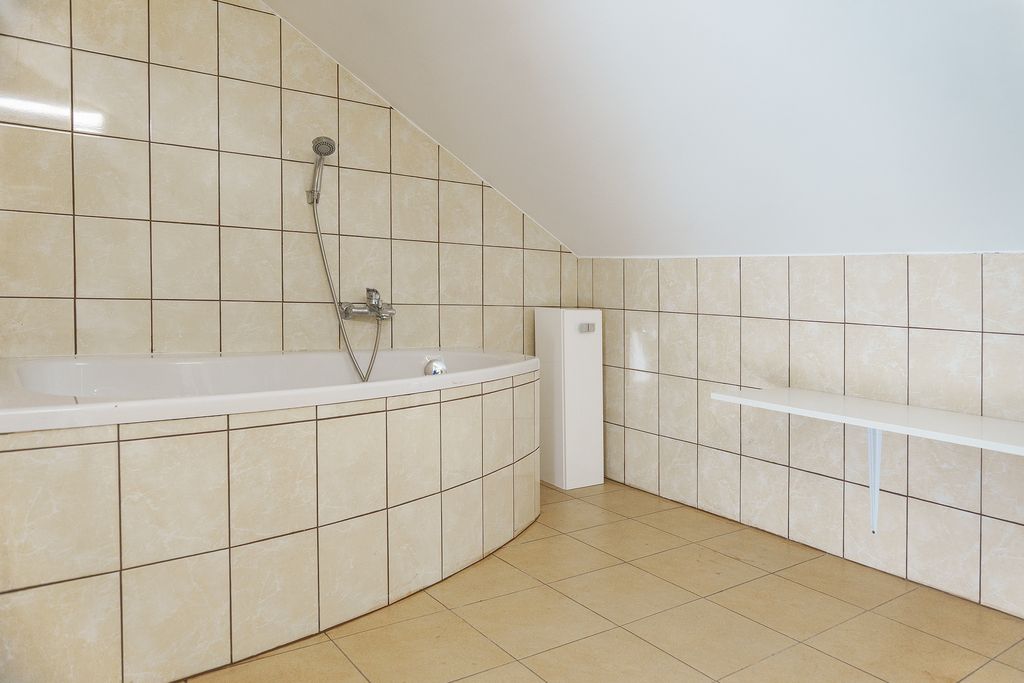 Dom typu "kostka polska" z dobudowanym poddaszem i niezależną klatką schodową.