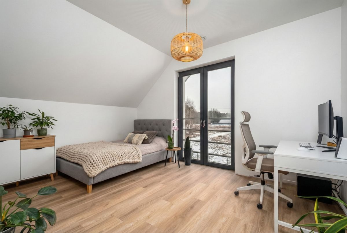 Dom idealnie sprawdzi się dla rodzin, osób pracujących zdalnie i wszystkich, którzy szukają połączenia komfortu, nowoczesności oraz bliskości natury.