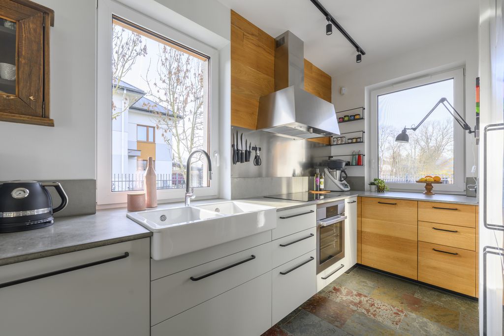 - Kuchnia na zamówienie: duży betonowy blat, duża płyta, profesjonalny okap, 2 lodówki. Dom stworzony do przyjmowania gości.