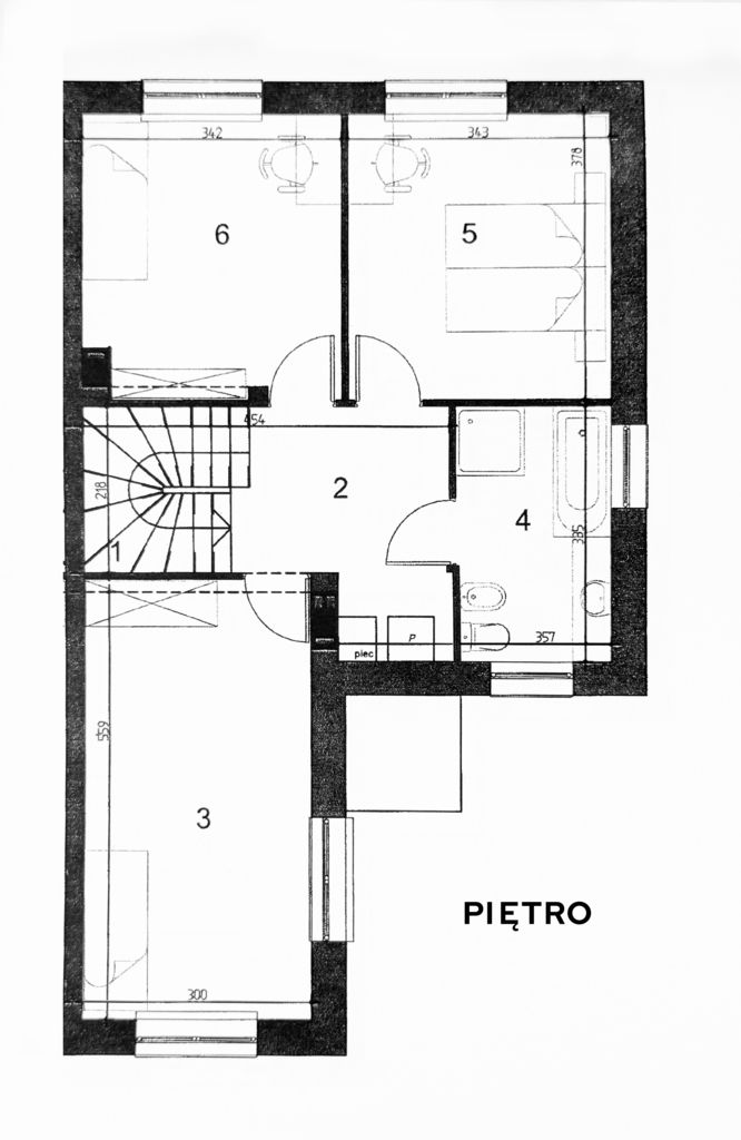- Piętro: 3 ustawne sypialnie, duża łazienka z wanną i prysznicem