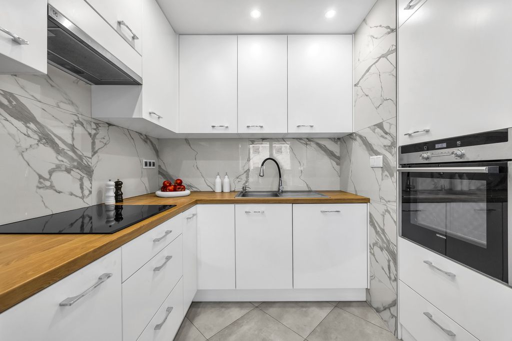 Podłogi wykończone deską barlinecką i płytkami, a kuchnia i łazienka są w pełni gotowe do użytkowania. To mieszkanie jest gotowe do zamieszkania – tu można wnieść walizkę i zacząć życie.