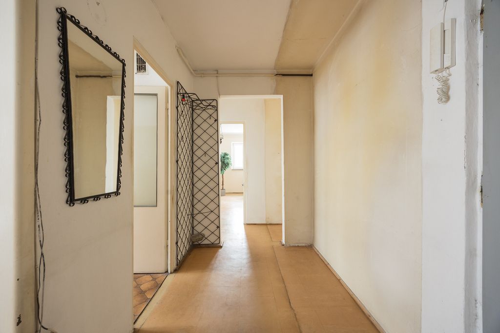 MATERIAŁY: Okna PCV, drzwi drewniane starego typu, na podłogach płytki z PCV. Mieszkanie do generalnego remontu.
