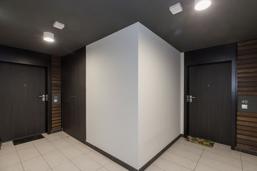 To wnętrze, które „wykończono dla siebie”, czyli bez żadnych kompromisów. Klasę materiałów widać i czuć w każdym detalu. O wysokim standardzie apartamentu świadczą m.in. klasyczny, ponadczasowy dębowy parkiet, zabudowa meblowa skrojona na miarę, kuchnia wyposażona w sprzęt marki Siemens (w tym ekspres do kawy w zabudowie oraz piekarnik z funkcją grilla i mikrofali), blaty oraz wyspa kuchenna wykonane z trwałego i eleganckiego spieku.