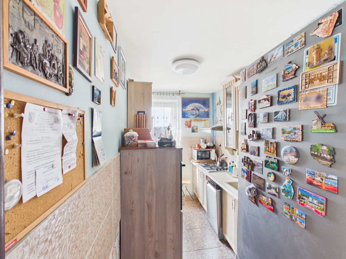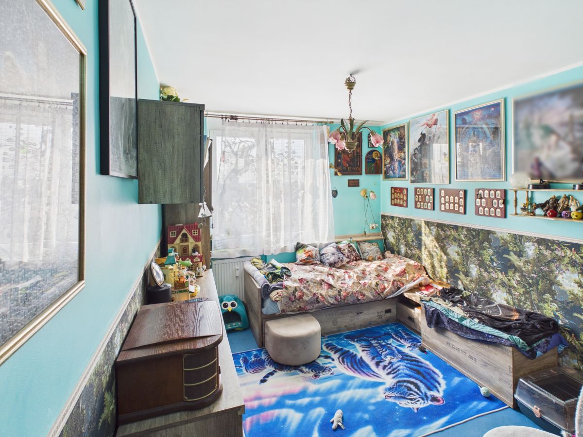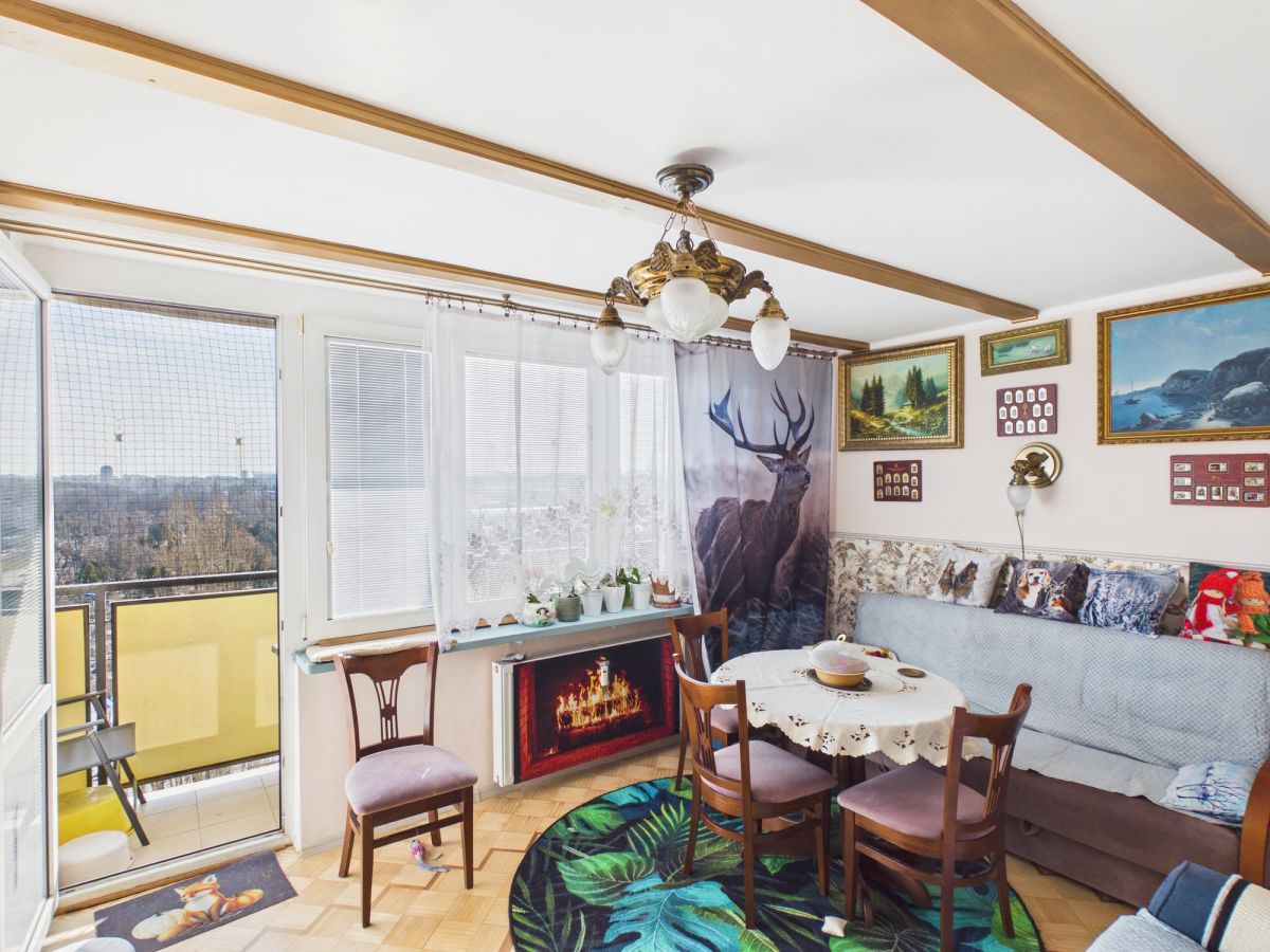 Lokal jest widny, rozkładowy i bardzo ustawny, z pięknym widokiem na panoramę Warszawy. Składa się z trzech oddzielnych pokoi o powierzchniach 17,5 m², 10,5 m² oraz 7 m², osobnej kuchni z oknem (7 m²) oraz łazienki z WC. Kuchnia i łazienka są urządzone i wyposażone - w łazience znajduje się zarówno wanna, jak i prysznic. W pokojach drewniany parkiet.