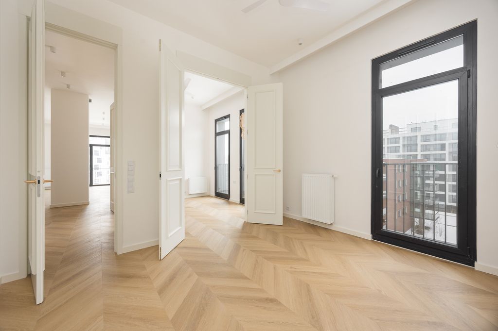 Mieszkanie nigdy nie było zamieszkałe. Znajduje się od cichej, wewnętrznej strony osiedla, z widokiem na zieloną część inwestycji, co zapewnia prywatność i komfort codziennego życia.