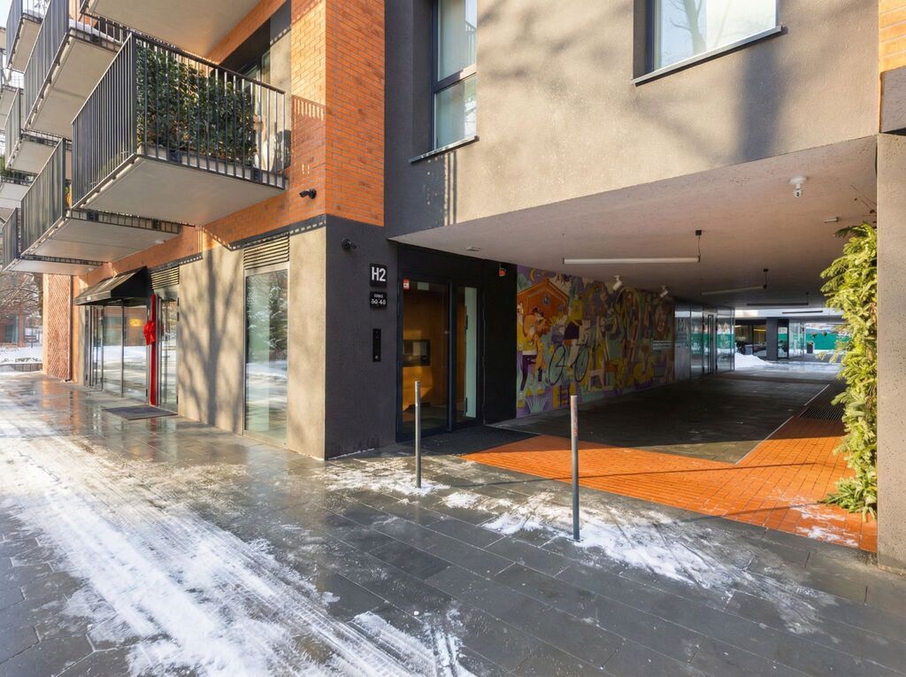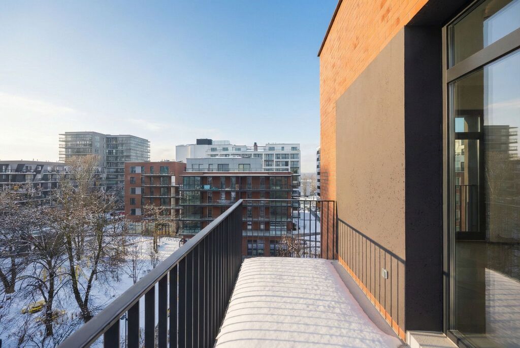 Balkon o powierzchni 7,57 m² stanowi naturalne przedłużenie salonu i wychodzi na spokojną, wewnętrzną część osiedla. Położenie na ostatnim piętrze gwarantuje brak sąsiadów nad lokalem oraz większą ciszę i prywatność.