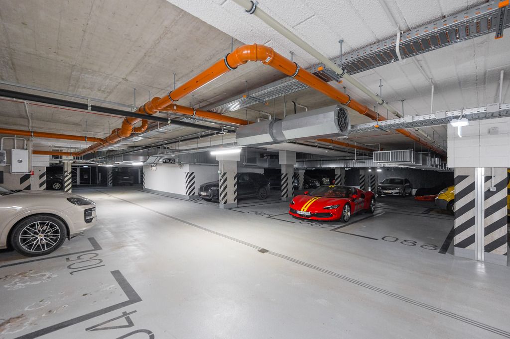 Do mieszkania przynależą dwa miejsca postojowe w garażu podziemnym oraz komórka lokatorska o powierzchni 3,77 m², która znajduje się na tym samym piętrze, obok wejścia do mieszkania. Całość dodatkowo płatna 145 000 zł.