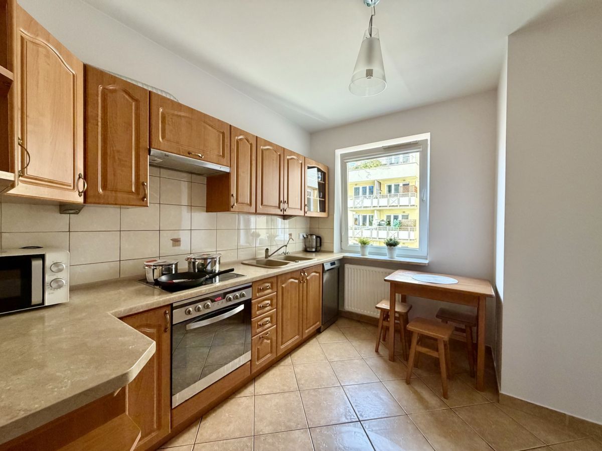 W okolicy znajdują się szkoły podstawowe, przedszkola, sklepy (Biedronka, Lidl, Żabka), apteki, sklepy spożywcze oraz Park Fort Bema - idealny dla rodzin i osób pracujących.