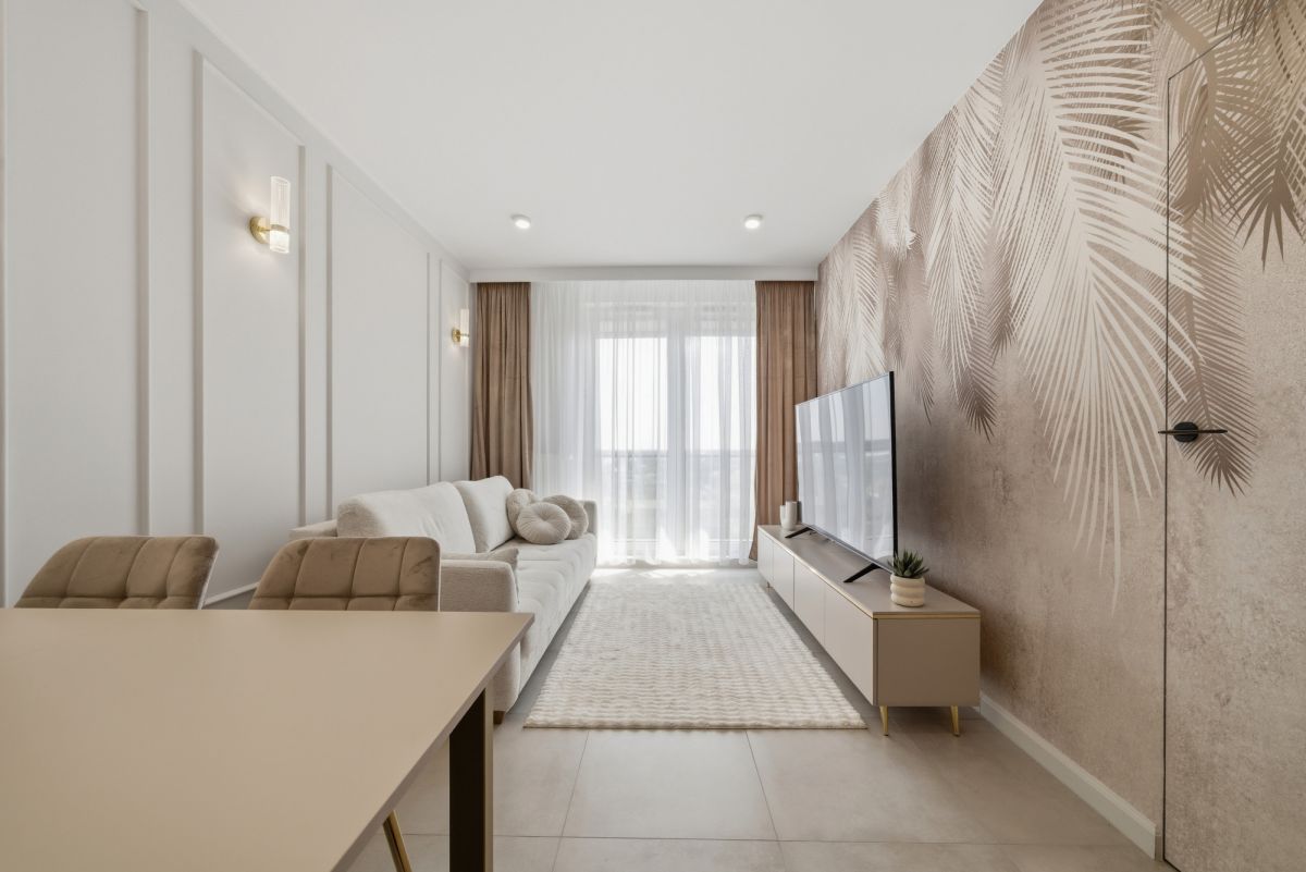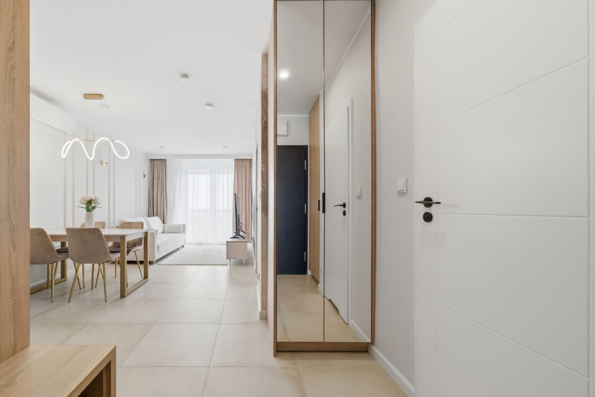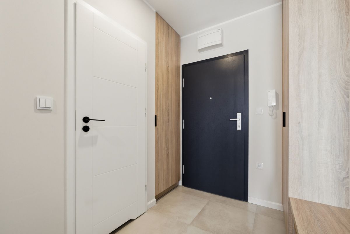 Do wynajęcia nowe, nigdy wcześniej niezamieszkane mieszkanie o powierzchni 41 m², zlokalizowane na 8. piętrze (ostatnim) w nowoczesnym budynku z 2025 roku, zlokalizowanym na Białołęce przy ul. Dionizosa. Lokal został starannie wykończony w jasnych, estetycznych kolorach, co sprawia, że wnętrze jest bardzo przyjemne i funkcjonalne.