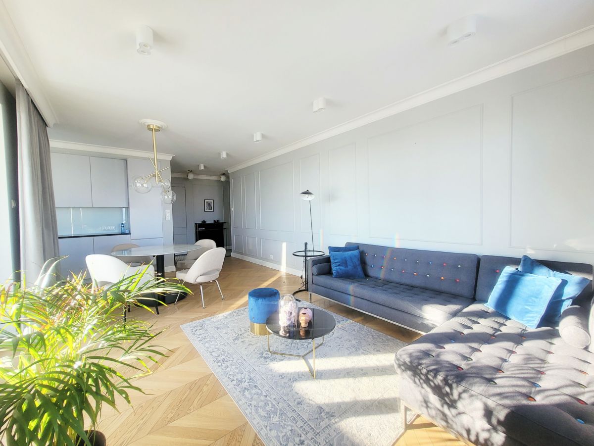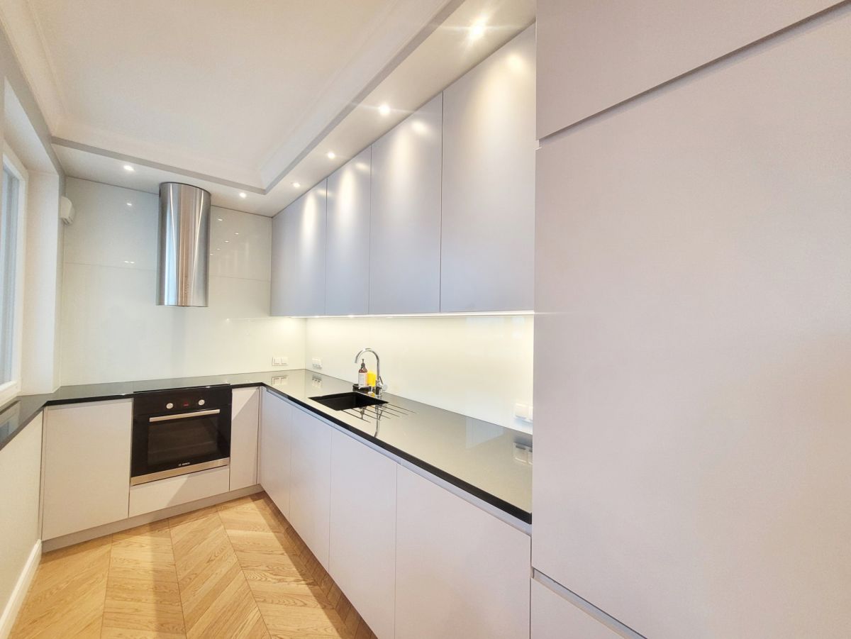 Do wynajęcia od zaraz eleganckie mieszkanie dwupokojowe z otwartą widną kuchnią, które zostało urządzone w nowoczesnej klasycznej stylistyce wraz z przynależną loggią o powierzchni ok 7m2. Do dyspozycji najemcy jest jedno miejsce parkingowe w garażu podziemnym i komórka lokatorska ok 4m2, które są wliczone w cenę najmu. Mieszkanie jest kompletnie umeblowane i bogato wyposażone. Widna kuchnia częściowo otwarta na salon, która jest zabudowana meblami na wymiar wraz z AGD firmy Bosch w zabudowie (duża zmywaka 65 cm). Mieszkanie jest wykończone w spójnym stylu, wysokim standardzie z dbałością o najlepszą jakość użytych materiałów i praktyczną funkcjonalność.