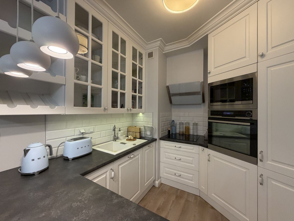 - Aneks kuchenny wyposażony w sprzęty AGD w idealnym stanie: lodówkę, płytę indukcyjną, piekarnik, mikrofalę, zmywarkę.
