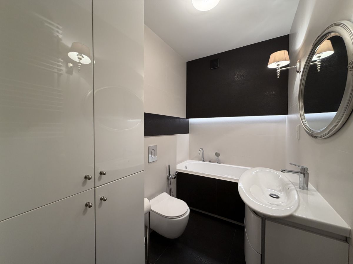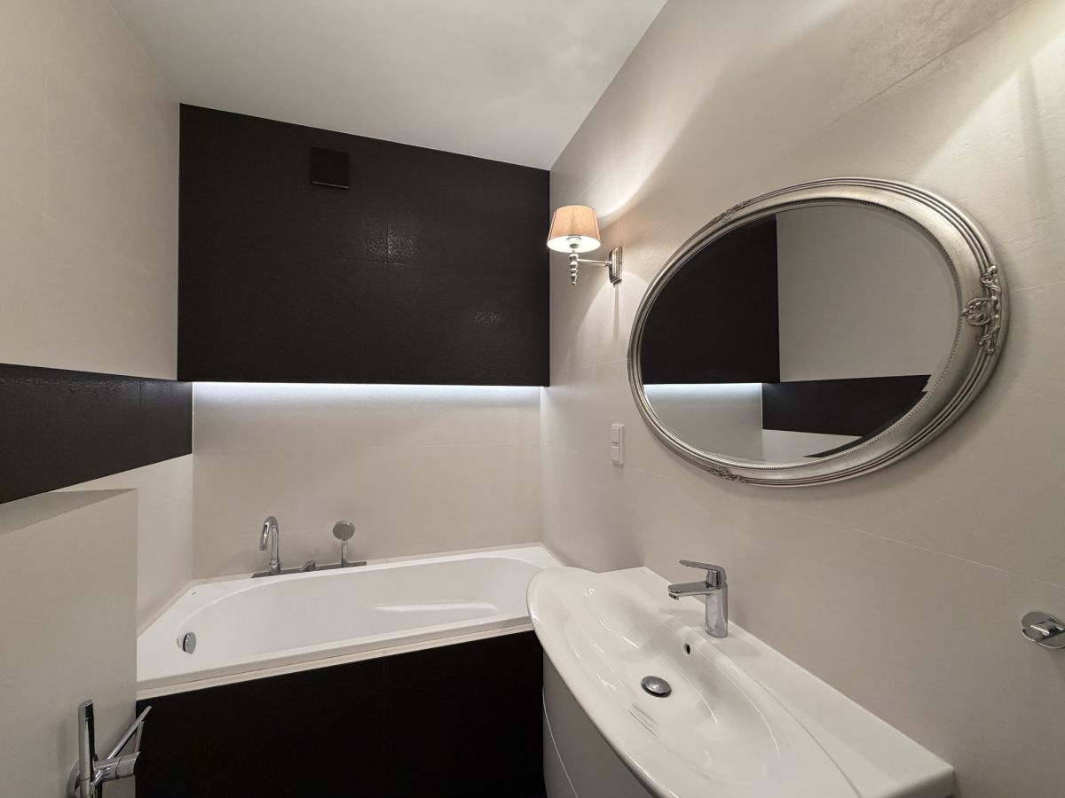 - Łazienka z wanną, pralką i suszarką.