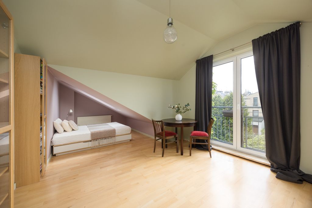 -duży otwarty pokój (studio) (ok. 15,4 m²) – idealny na sypialnię, biuro, strefę relaksu,