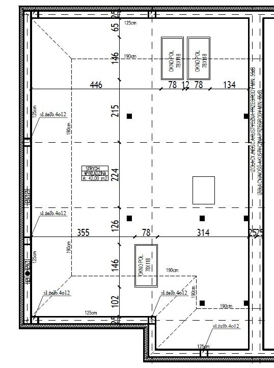Poddasze użytkowe o powierzchni około 60m2.
