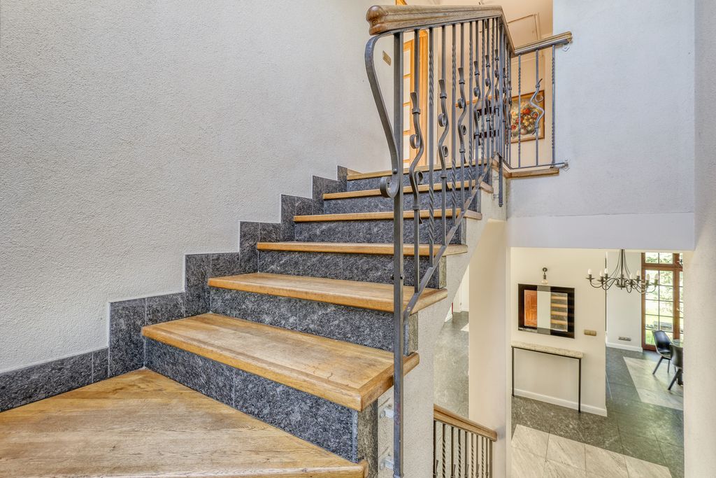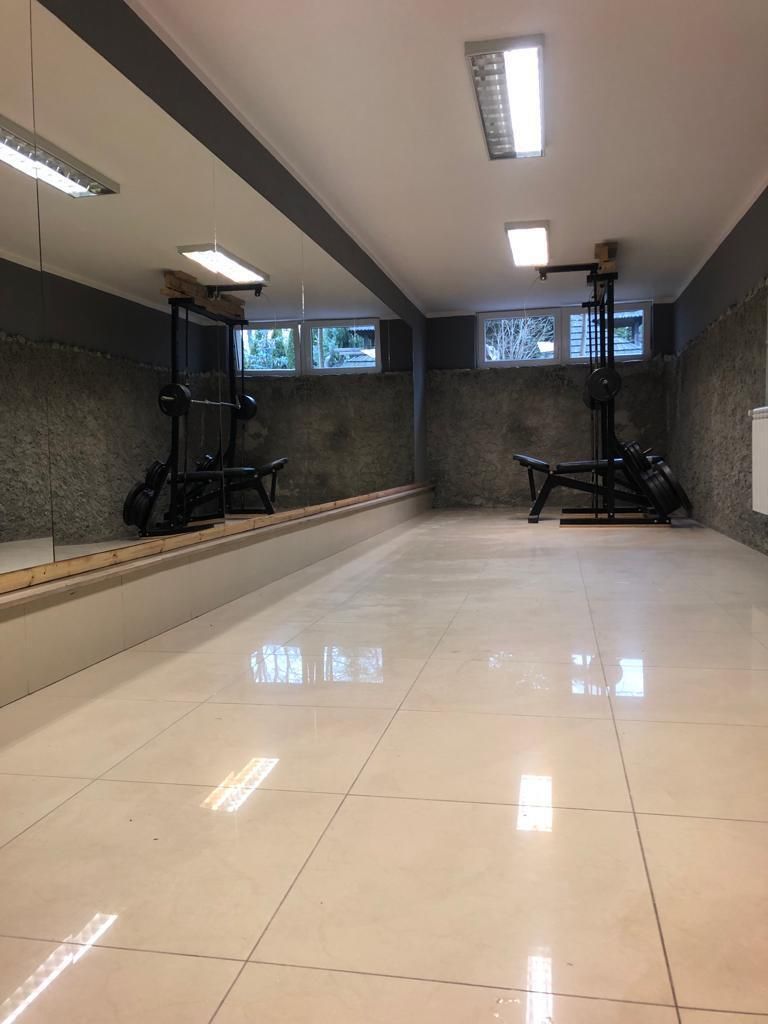 -Piwnica: garaż na 4 auta, 4 pomieszczenia gospodarcze (w tym siłownia) oraz robocza łazienka.