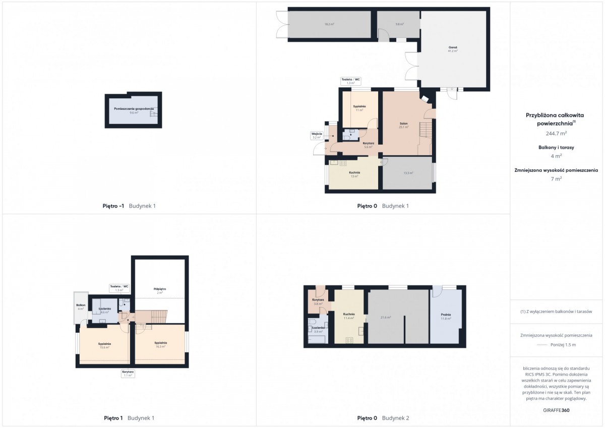 Powierzchnia całkowita domu wraz ze wszystkimi pomieszczeniami to aż 244 m2