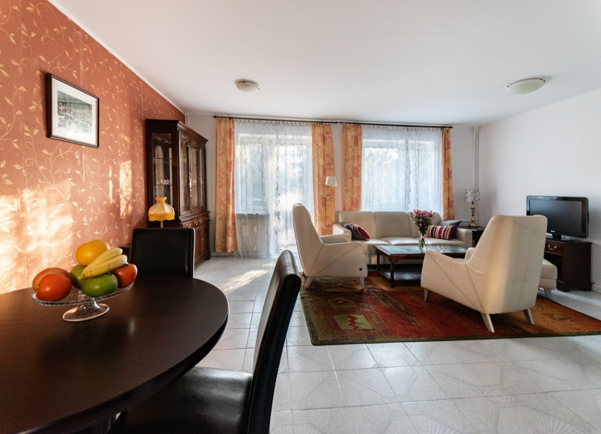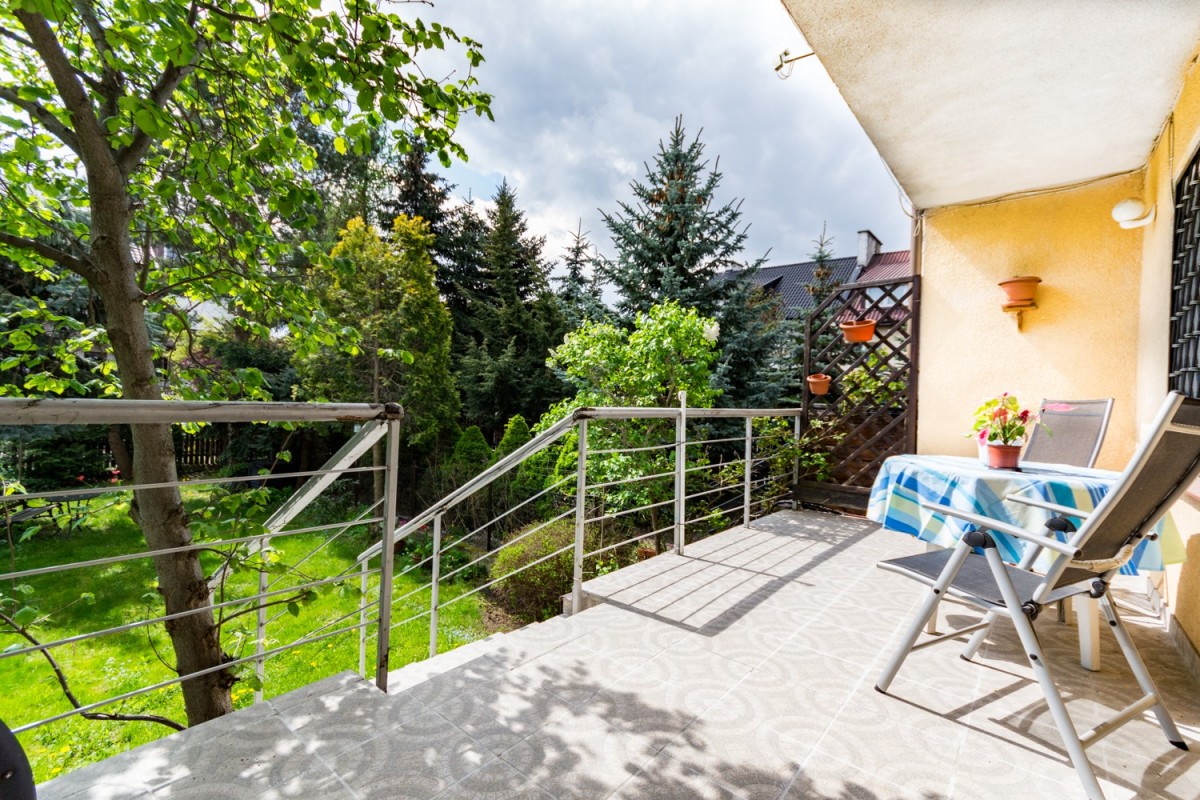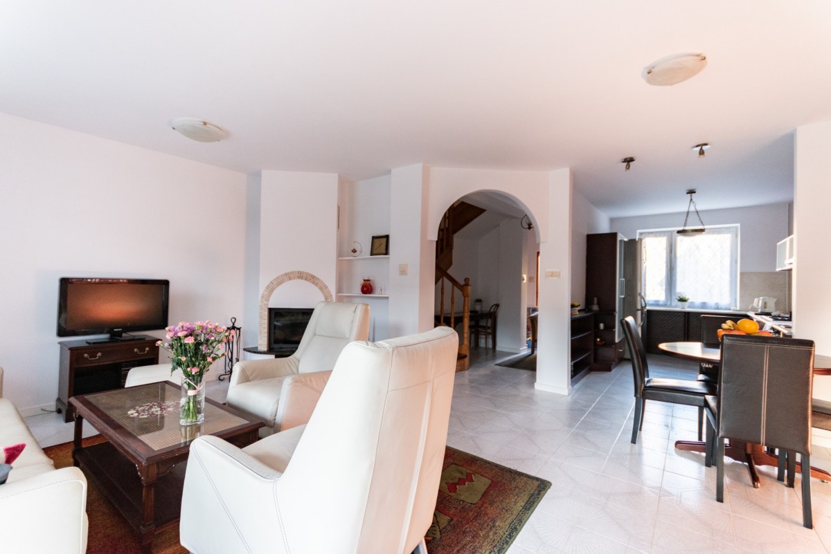 Do wynajęcia ładny dom w zabudowie szeregowej położony na granicy Piaseczna z Mysiadłem. Powierzchnia całkowita 220 m2. Powierzchnia użytkowa 162 m2. Ten w pełni umeblowany dom składa się z poziomu 1 (salon, jadalnia, kuchnia, toaleta, przedpokój), z którego możemy wyjść na ładnie zagospodarowaną działkę, poziomu 2 ( 3 sypialnie, łazienka, balkon), poziomu 3 (zagospodarowane poddasze), poziomu -1 (pomieszczenia gospodarcze i garaż). Dom jest dobrze nasłoneczniony. Wyposażony został w sprzęt AGD, RTV. Powierzchnia działki - 220m2. Garaż dla 1 dużego samochodu. Ponadto na terenie działki znajduje się podjazd dla 2 samochodu. Zaletą oferty jest ładny ogródek - 108 m2. Nieruchomość położona jest w cichej i spokojnej okolicy.