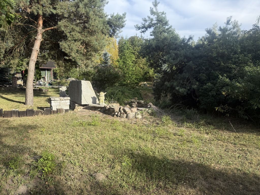 Na terenie posesji znajduje się niewielki, wolnostojący domek parterowy o powierzchni ok. 30 m², a także nieaktywne oczko wodne, altana oraz liczne krzewy i drzewa, które tworzą przyjemny, naturalny klimat i dają wiele możliwości aranżacyjnych.