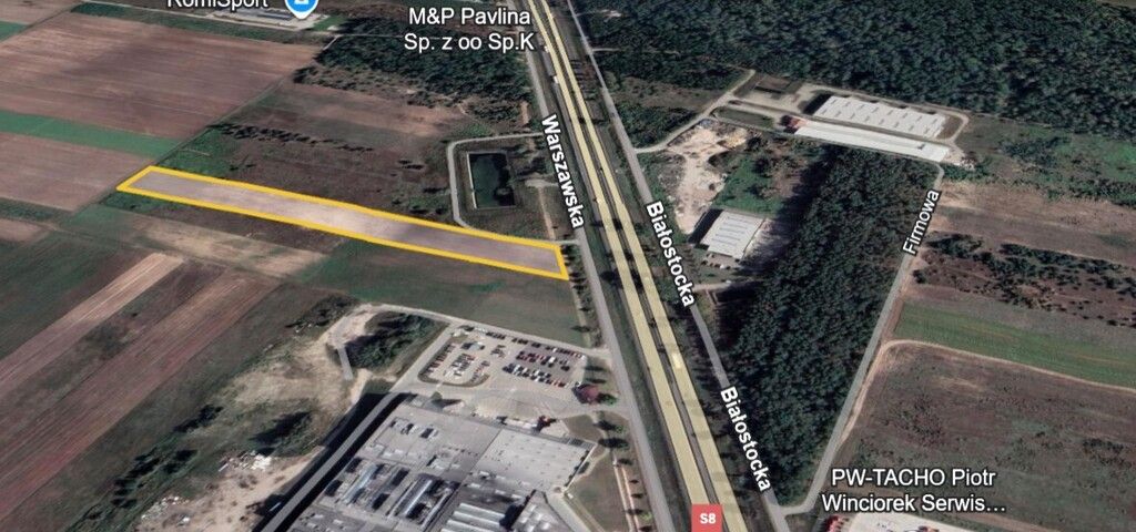 Doskonała widoczność z trasy S8, wjazd na działkę z asfaltowej drogi serwisowej, w okolicy istniejąca zabudowa produkcyjno-magazonowa renomowanych firm.