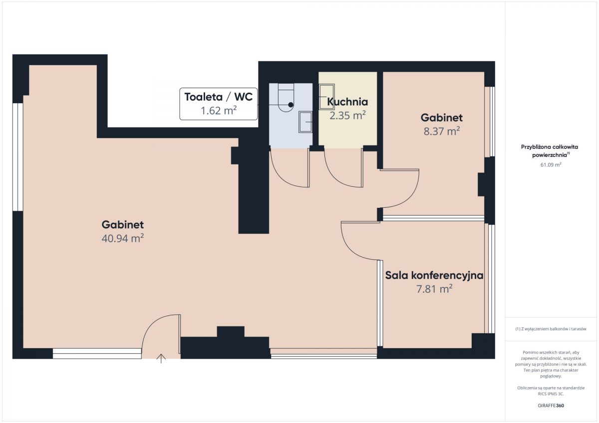 Funkcjonalny, gotowy do pracy lokal biurowy o powierzchni 64 m², idealny na siedzibę firmy, kancelarię prawną, agencję nieruchomości lub biuro usługowe. Przestrzeń zaprojektowana z myślą o komforcie pracy.