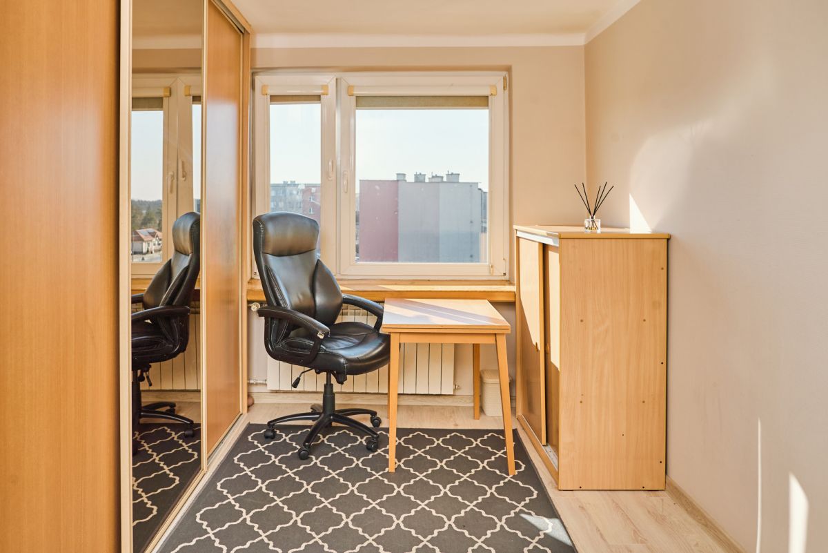 Mieszkanie położone jest na 4. piętrze w 4-piętrowym budynku bez windy. Choć ostatnia kondygnacja może być mniej wygodna dla osób starszych, ma ona również swoje istotne zalety - brak sąsiadów nad głową, większą prywatność oraz piękne doświetlenie mieszkania przez cały dzień z bardzo ładnym widokiem.