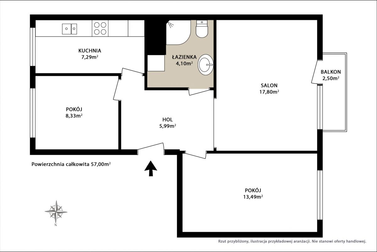 Mieszkanie o powierzchni 57,00 m² składa się z: