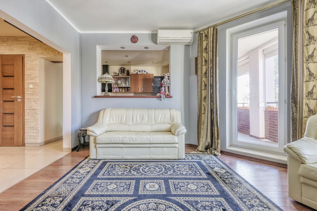 -jasny, ustawny salon z wyjściem na balkon z oknami od strony południowej,