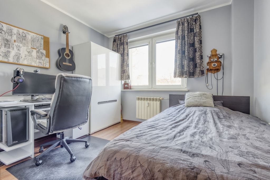 -przytulna sypialnia z dużą szafą z oknem na stronę północną,
