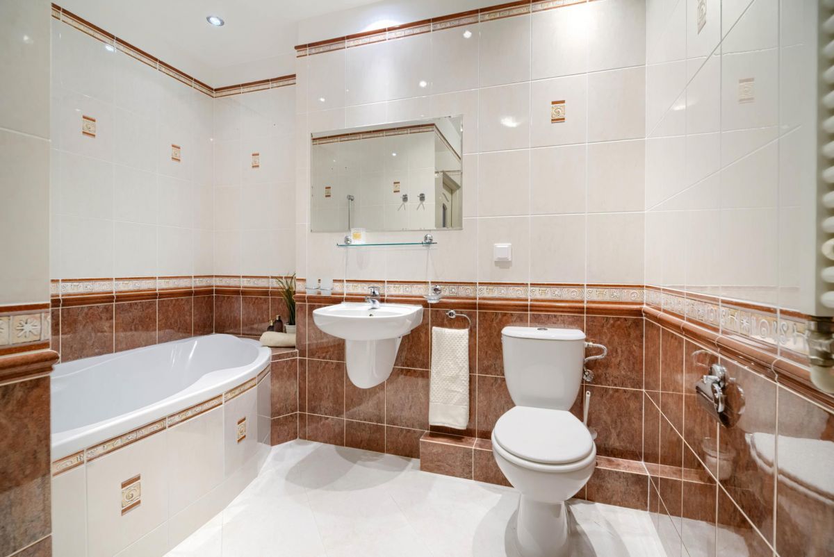 Dużym atutem mieszkania jest również przestronna łazienka, która daje dużą swobodę aranżacyjną.