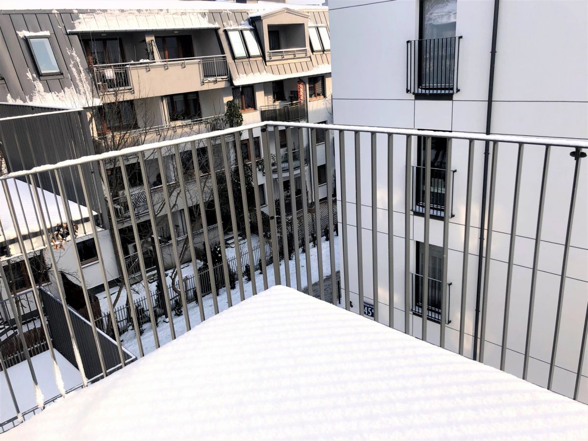 Dwustronne, z orientacją wschód-zachód, z dużym balkonem o pow. 5,35 m2.