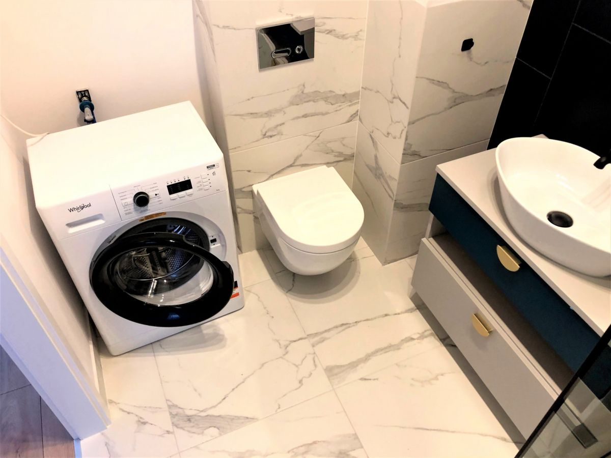 - łazienka z kabiną prysznicową (deszczownica) i pralką - 4,11m2,