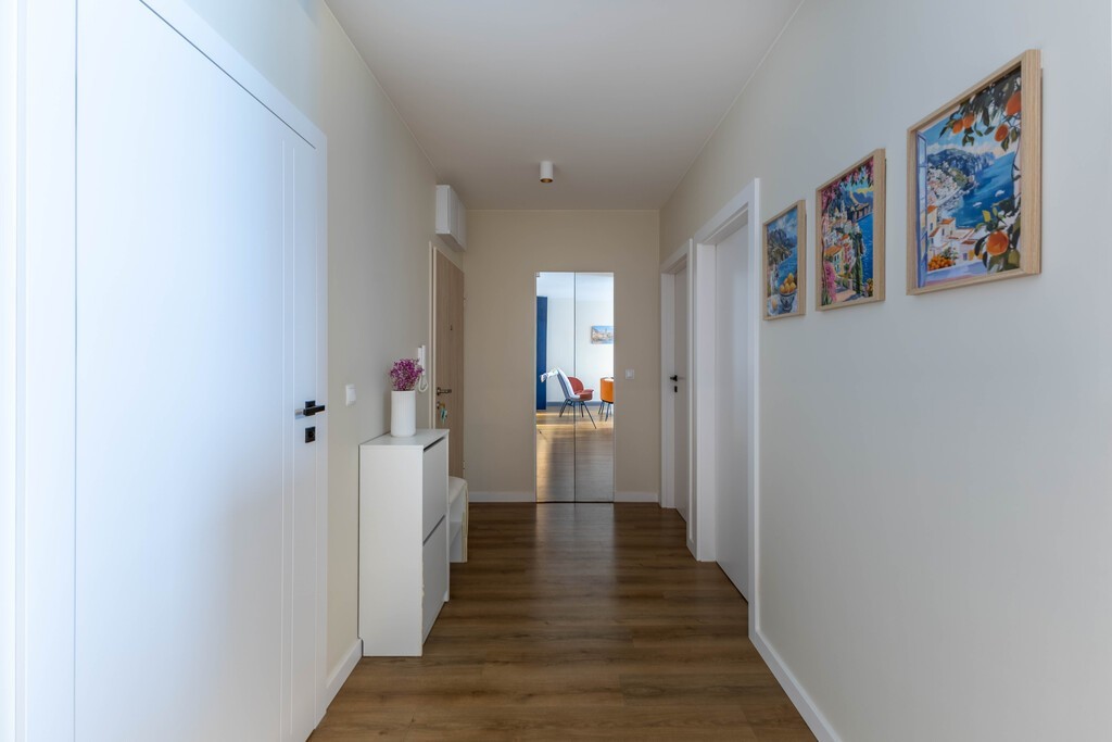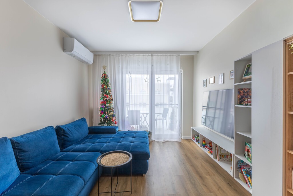 The apartment is furnished to a very high standard. The property is quiet, bright, and functional. The floors are vinyl and stoneware. District heating is provided. Plastic windows. High-quality appliances are included. An additional advantage is air conditioning with a heating function.