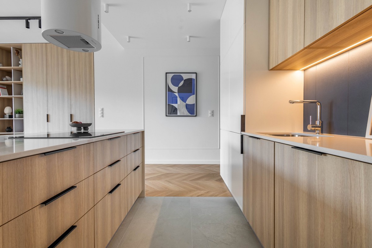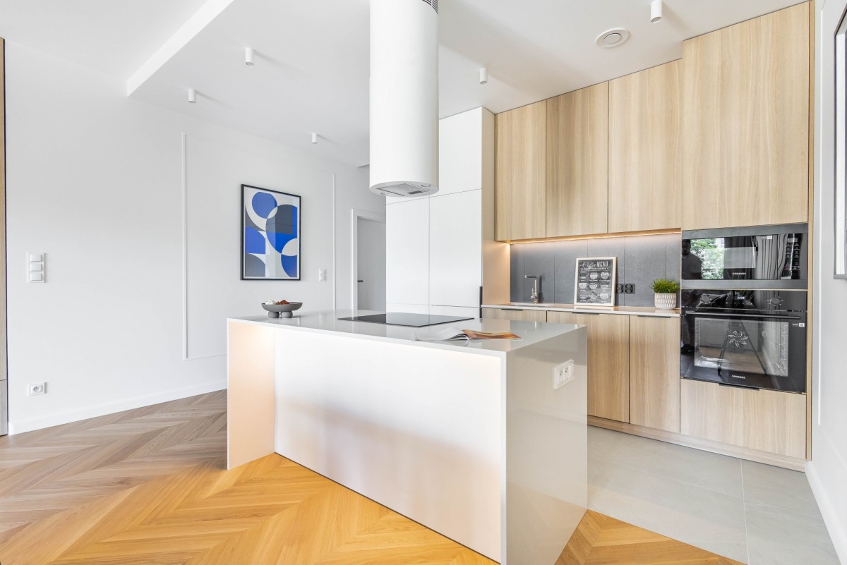 - Ergonomiczny, wygodny, w pełni wyposażony aneks kuchenny z dużą funkcjonalną wyspą