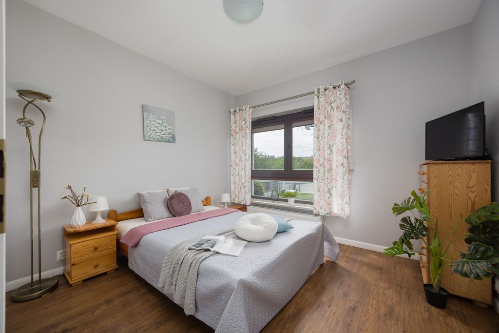 - przestronnej sypialni(12,3 m2) z dużym oknem