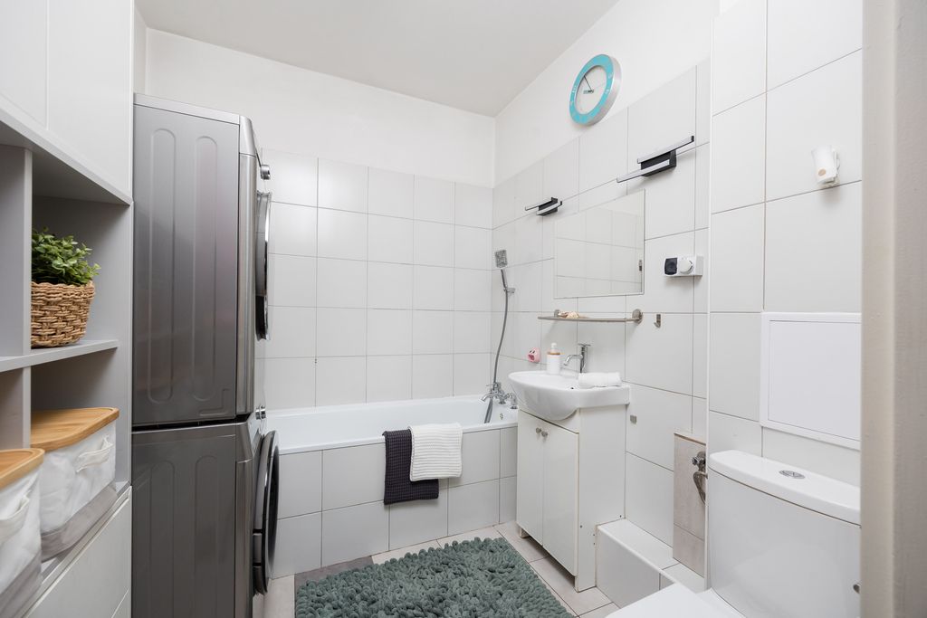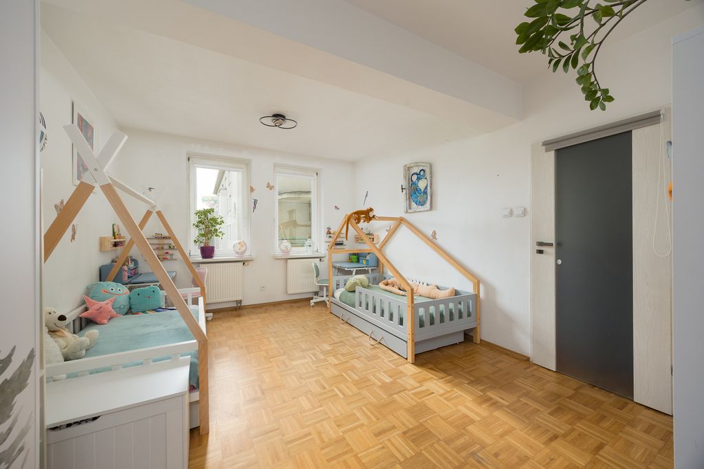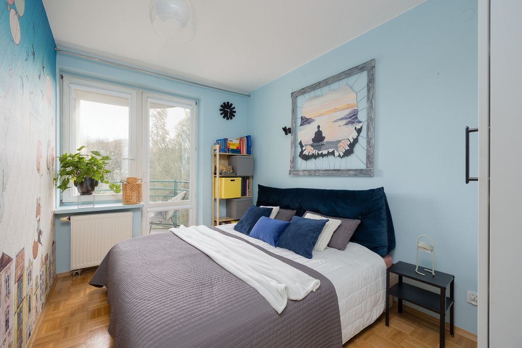 - drugiej sypialni (9,9 m²) z wyjściem na balkon (ok. 3 m²),
