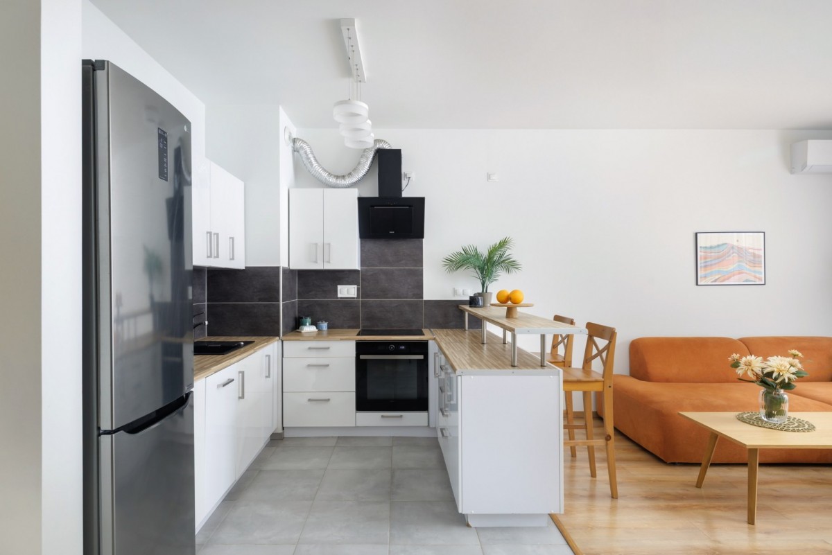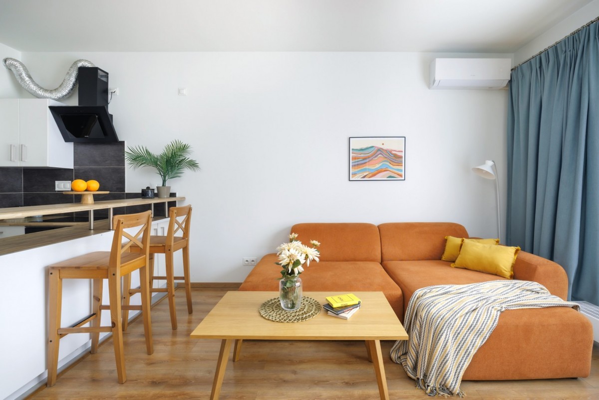 Mieszkanie o powierzchni 47,51m² jest umeblowane i gotowe do wprowadzenia. Bardzo dobrze rozplanowane i klimatyzowane wnętrze gwarantuje wygodne użytkowanie. Duże drewniane okna i ekspozycja wschodnia zapewniają odpowiednią ilość naturalnego światła. Na część dzienną składają się przestronny przytulny salon z wyjściem na balkon oraz w pełni wyposażony aneks kuchenny. W sypialni znajduje się duże podwójne łóżko oraz duża pojemna szafa. Łazienka wyposażona jest w kabinę prysznicową, pralkę, umywalkę oraz wc. Balkon przynależący do mieszkania jest niedzielony z innymi mieszkańcami, dzięki czemu zapewnia prywatność.