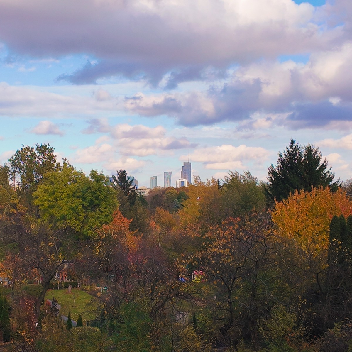 • Widok: zieleń, ogródki działkowe, panorama Warszawy