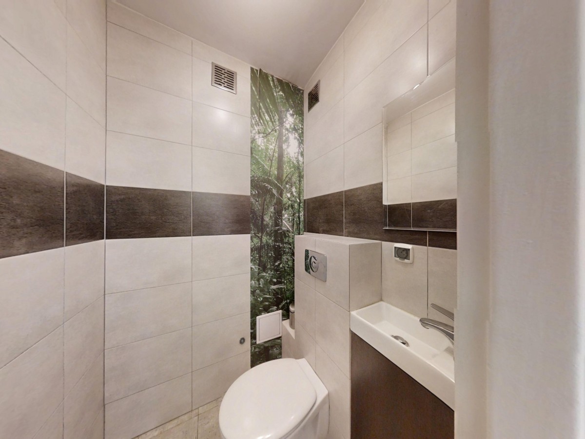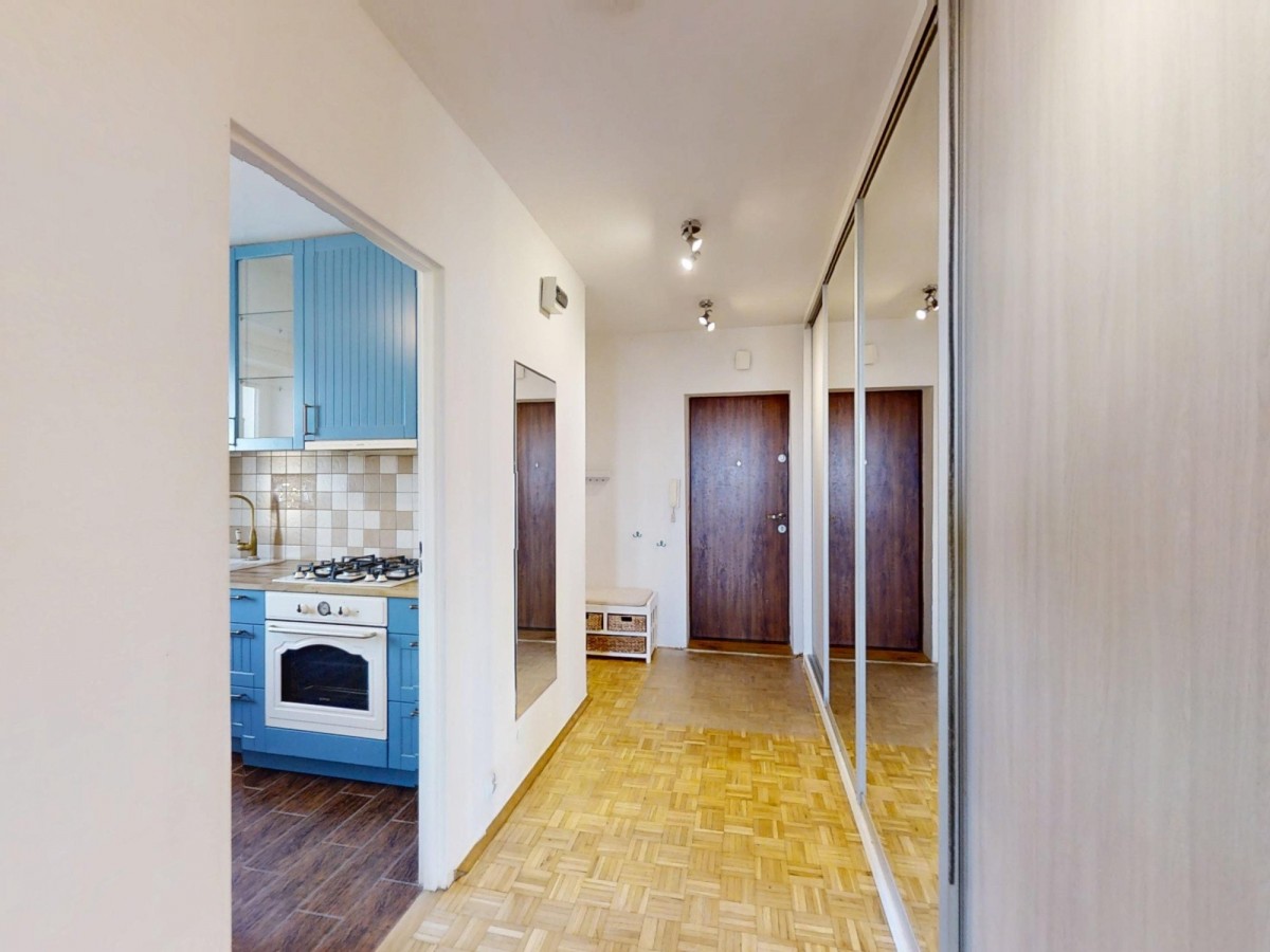 Zamknięty szlabanem parking dla mieszkańców, wspaniała lokalizacja, niezabudowana przestrzeń przed oknem i możliwość połączenia kuchni z salonem, to jedne z najbardziej zauważalnych atutów tej nieruchomości.