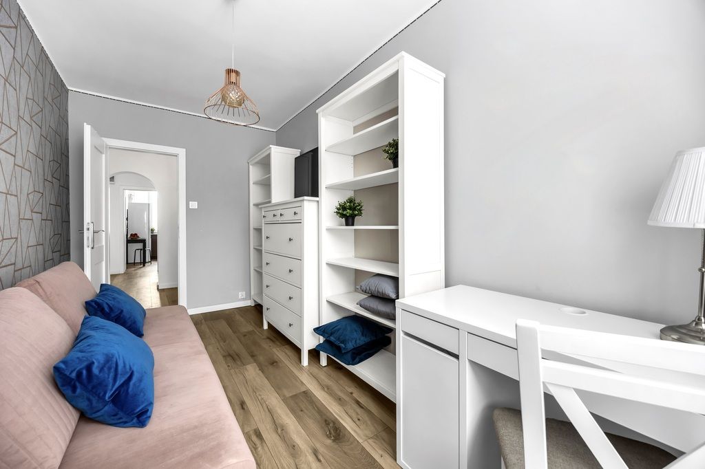 Lokal jest umeblowany i oferuje dużo miejsca do przechowywania – szafy, schowki i logicznie zaplanowane przestrzenie, które doceni każdy, kto lubi porządek bez kombinowania. Dodatkowym atutem jest piwnica (1,5m2), idealna na rzeczy sezonowe, rower czy wszystko to, co nie musi być pod ręką, ale warto, żeby było na swoim miejscu.