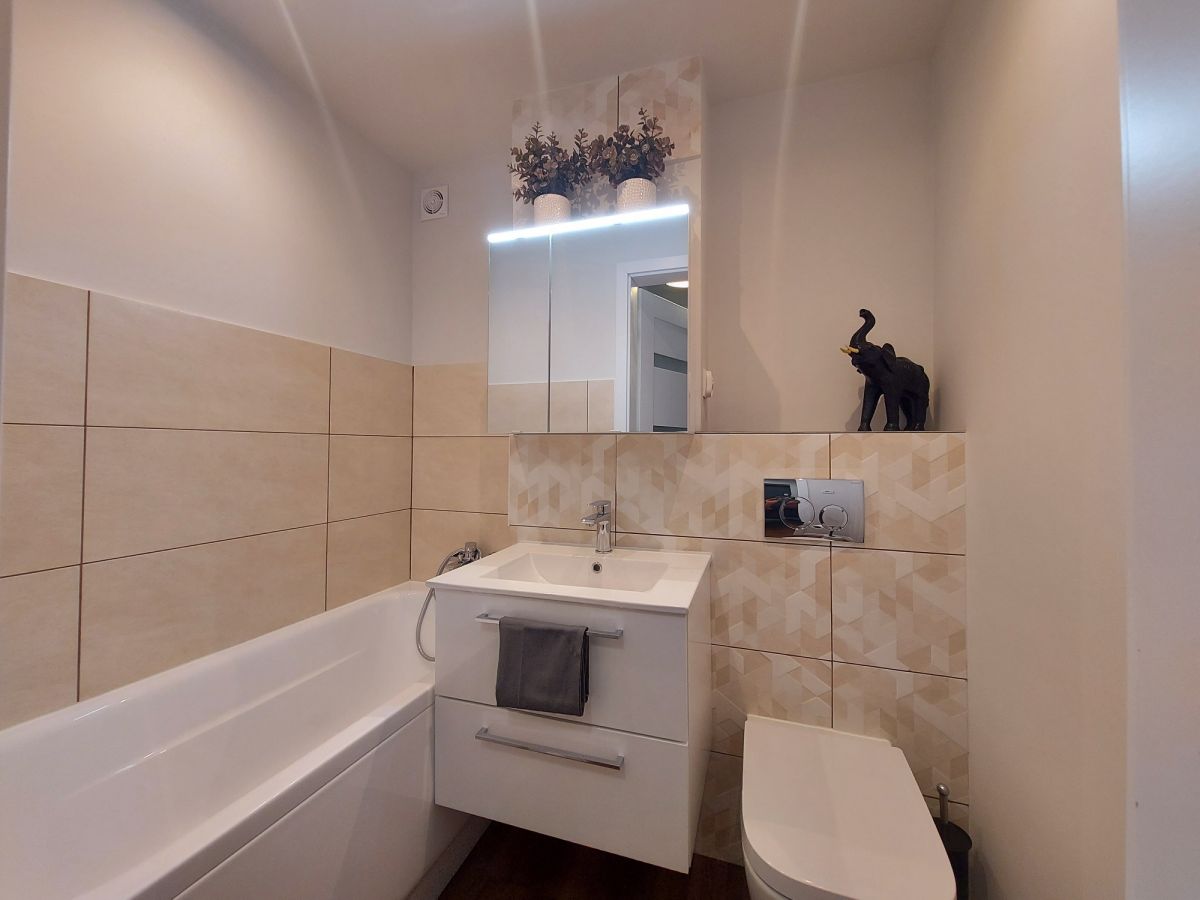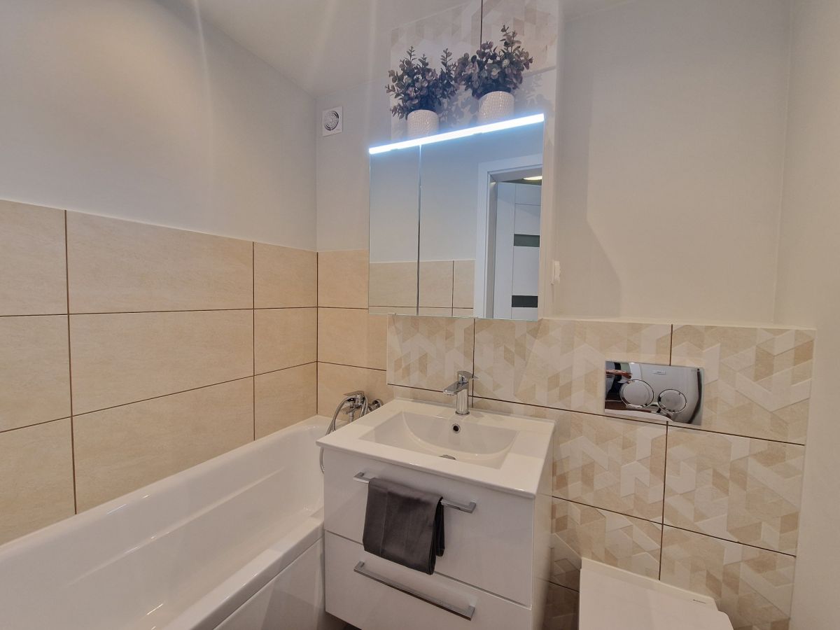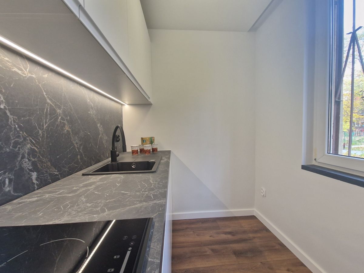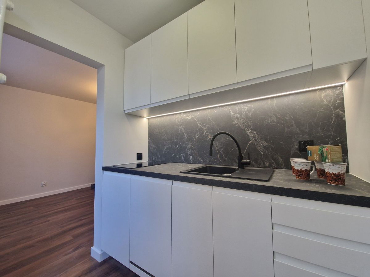 Mieszkanie po generalnym remoncie łącznie z wymienioną instalacją elektryczną. Kuchnia wyposażona w zmywarkę i płytę indukcyjną. Na nowo zagospodarowana łazienka. W przedpokoju duża szafa z przygotowanym miejscem na podłączenie pralki.