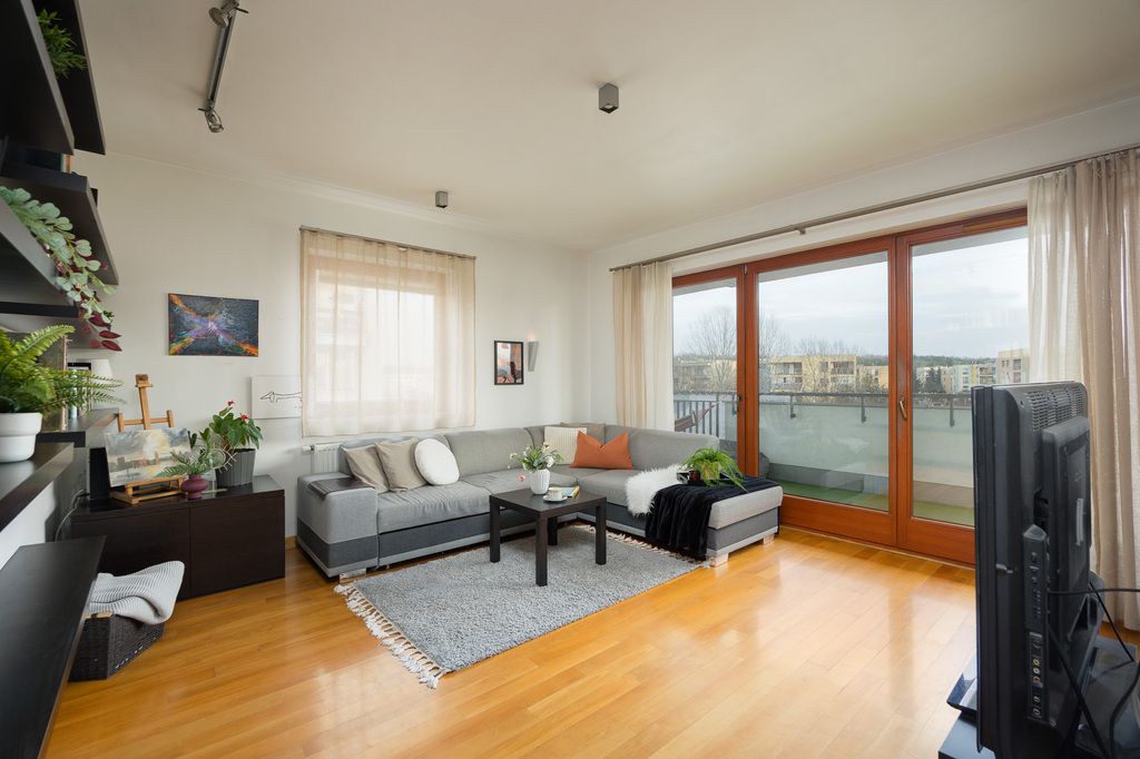 A COMFORTABLE 3-BEDROOM APARTMENT WITH A LARGE BALCONY IN THE TIVOLI ESTATE – RIGHT NEAR THE KONDRATOWICZA METRO STATION! An ideal option for a family or those who value peace, greenery, and excellent transport links to the city center. This gated, secure community with well-maintained common areas is located on Malborska Street, just a few minutes' walk from the Kondratowicza metro station.