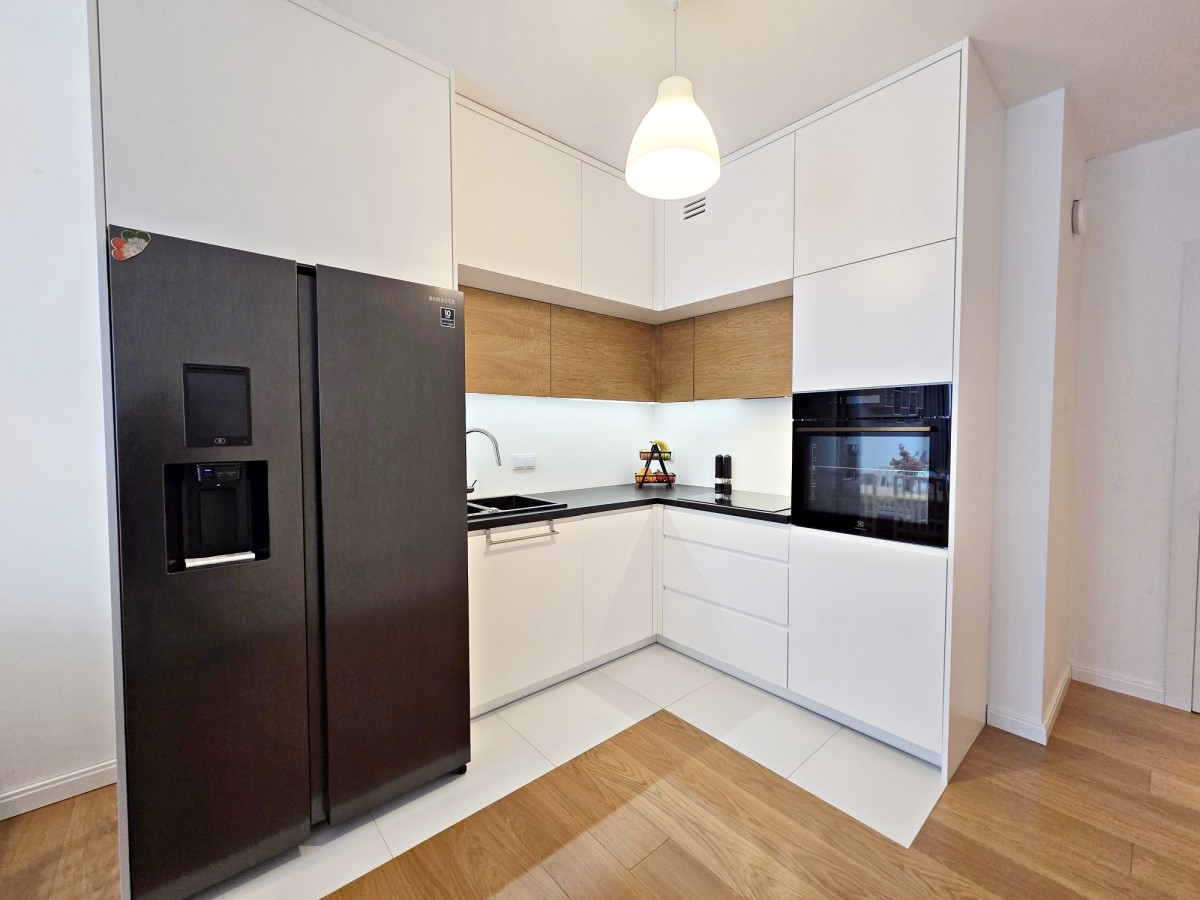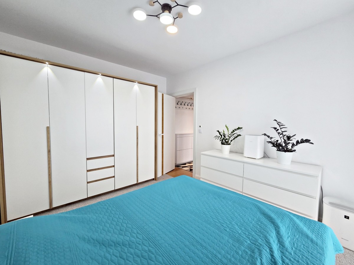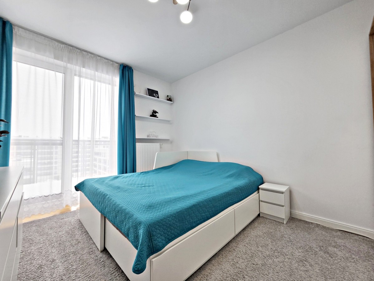 Z przyjemnością prezentujemy Państwu na sprzedaż dwustronne atrakcyjne mieszkanie o powierzchni 76,81 mkw w nowoczesnym bloku z 2020 roku. Lokal usytuowany jest na 7 ostatnim piętrze. Mieszkanie składa się z salonu z aneksem kuchennym, sypialni, większego i mniejszego pokoju, które mogą służyć jako gabinety lub pokoje dziecięce, garderoby, łazienki z prysznicem, toalety oraz przedpokoju. Osiedle jest zamknięte i monitorowane, a także posiada naziemne miejsca parkingowe dla gości za szlabanem.