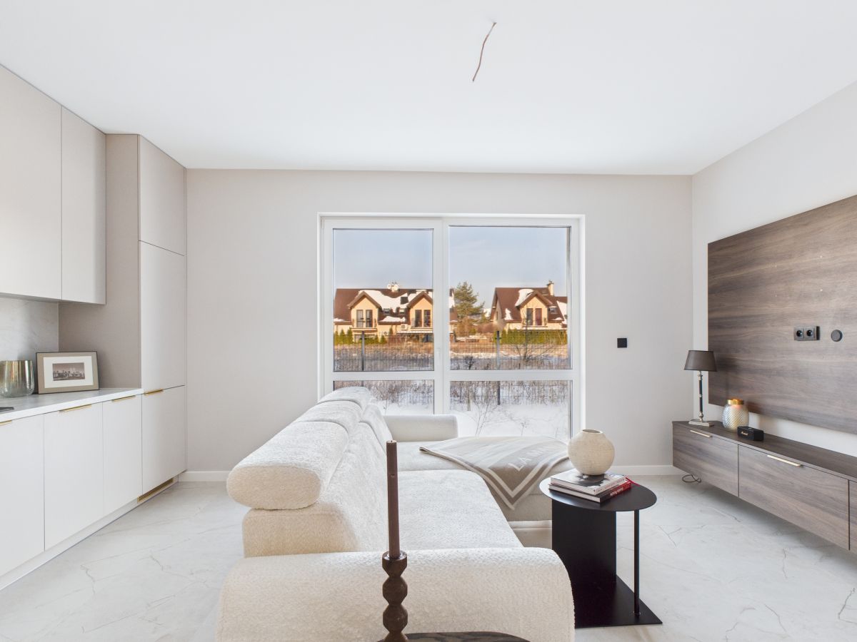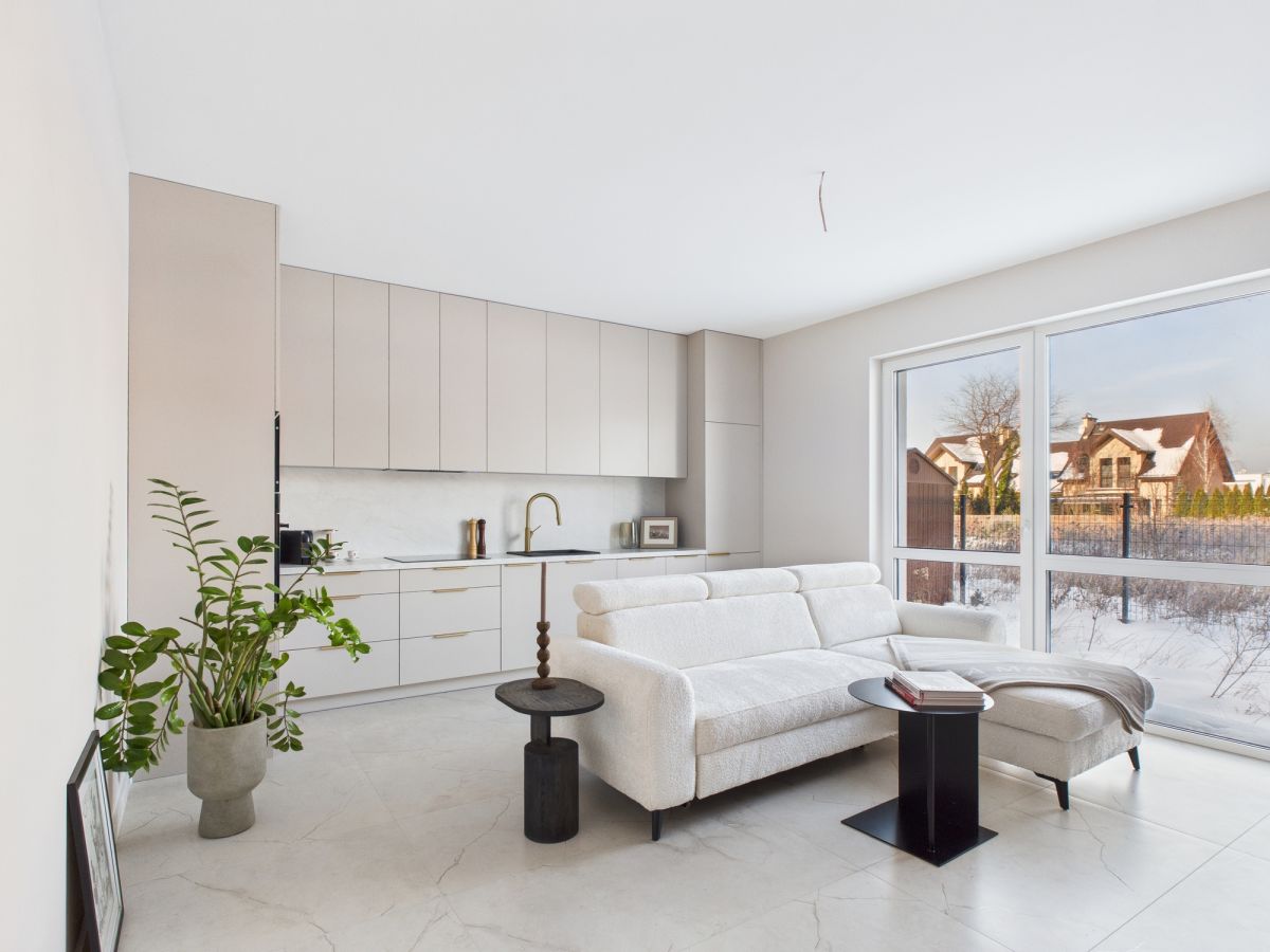 Niezamieszkane, świeże i gotowe do wprowadzenia mieszkanie na parterze kameralnego budynku. Funkcjonalny rozkład: salon z aneksem kuchennym i wyjściem do ogródka, 2 pokoje (sypialnia + gabinet/pokój dziecięcy), łazienka i przedpokój.