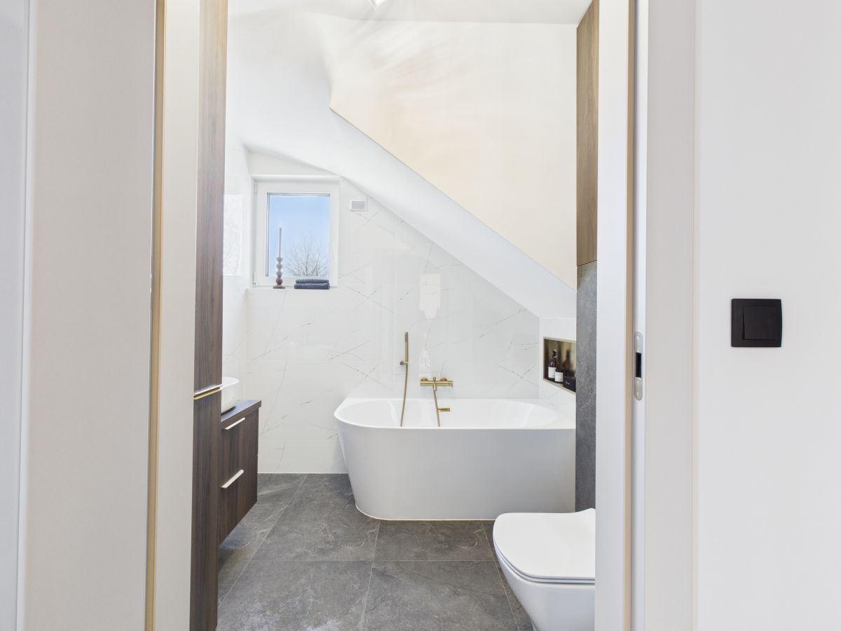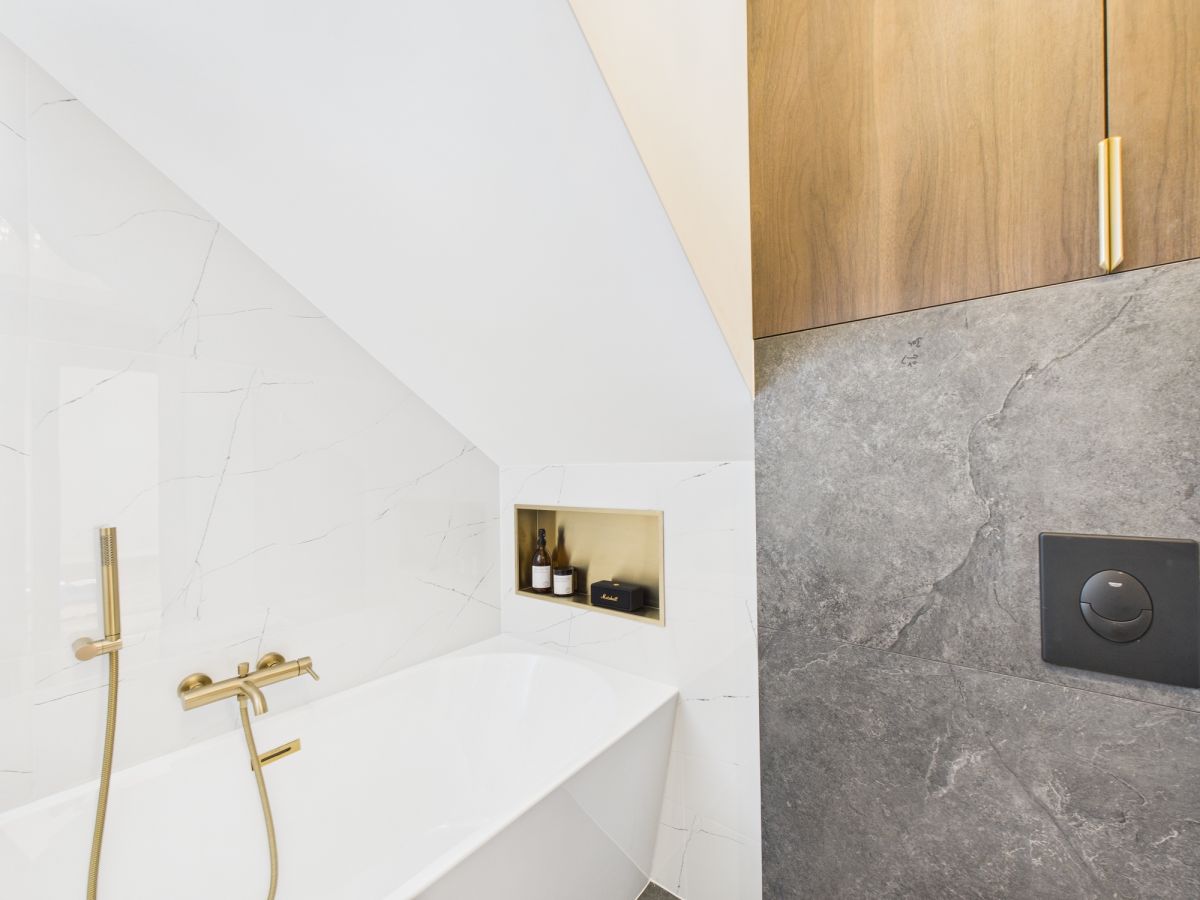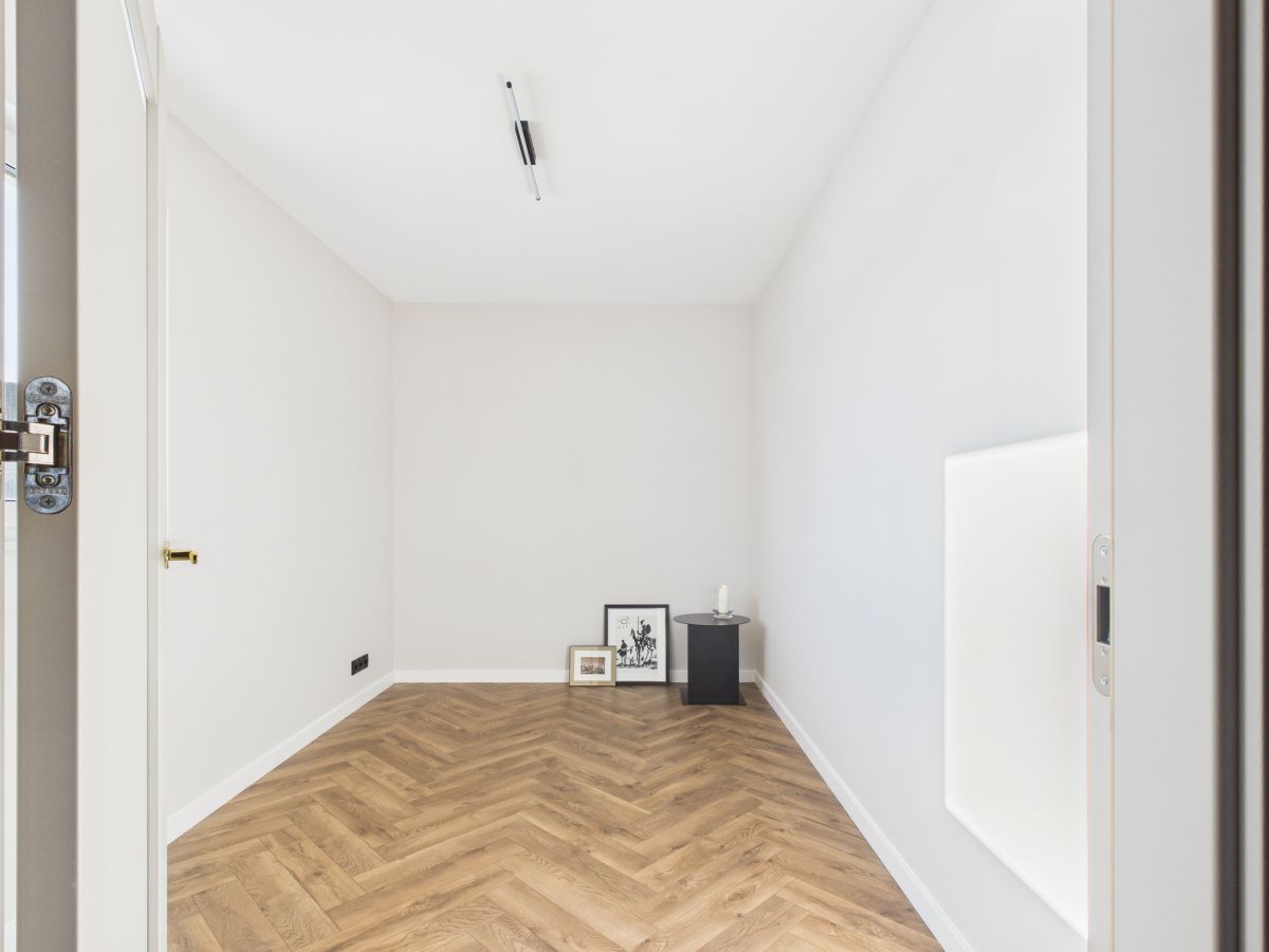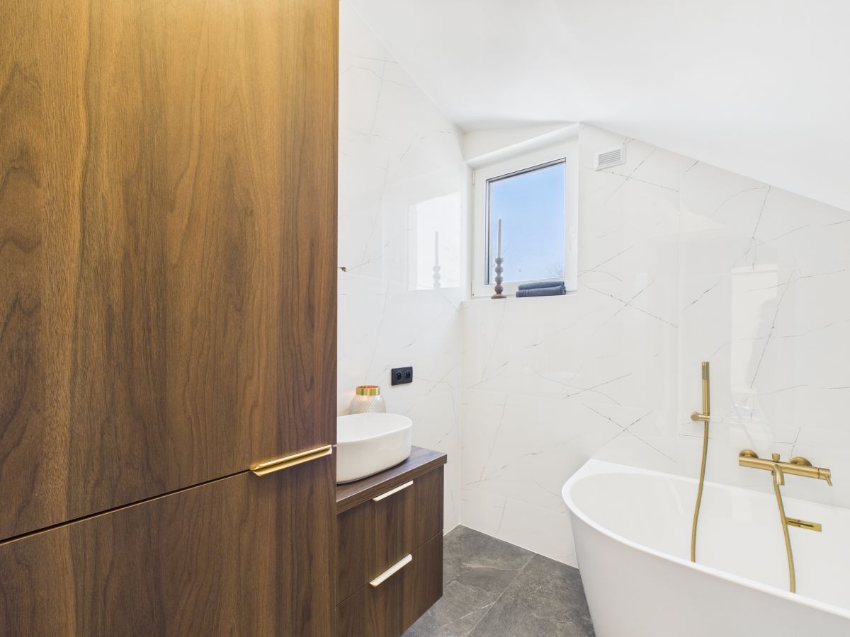 - Zabudowa kuchni i szafa w sypialni wykonane na zamówienie z tych samych materiałów - spójna i elegancka aranżacja