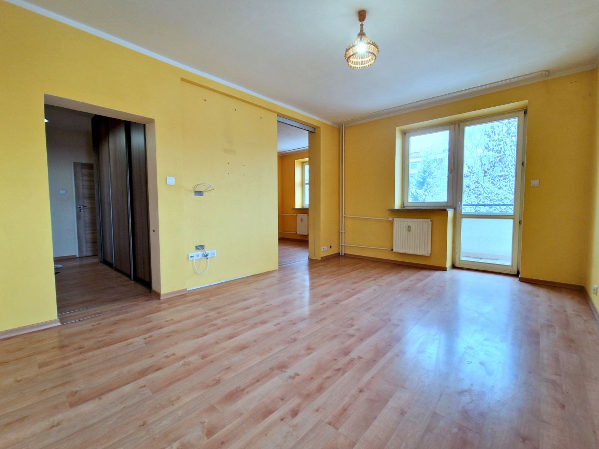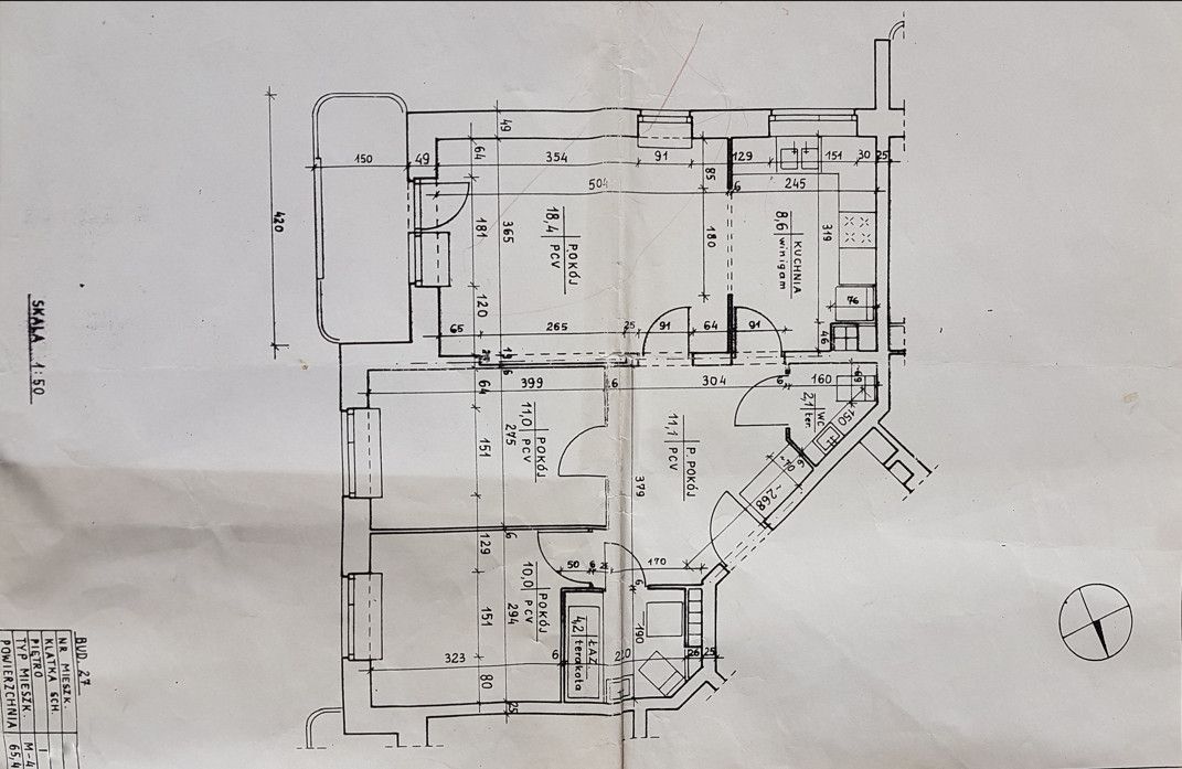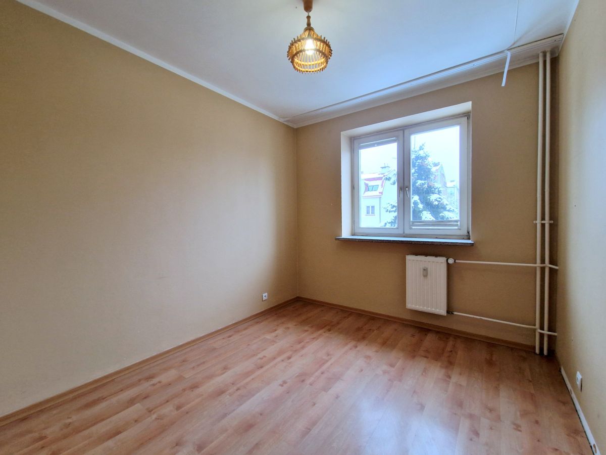 Na podłogach panele (w pokojach i przedpokoju) oraz terakota (łazienka, wc, kuchnia). Wysokość pomieszczeń wynosi 270 cm, co zwiększa poczucie przestrzeni. Mieszkanie do odświeżenia lub częściowego remontu.