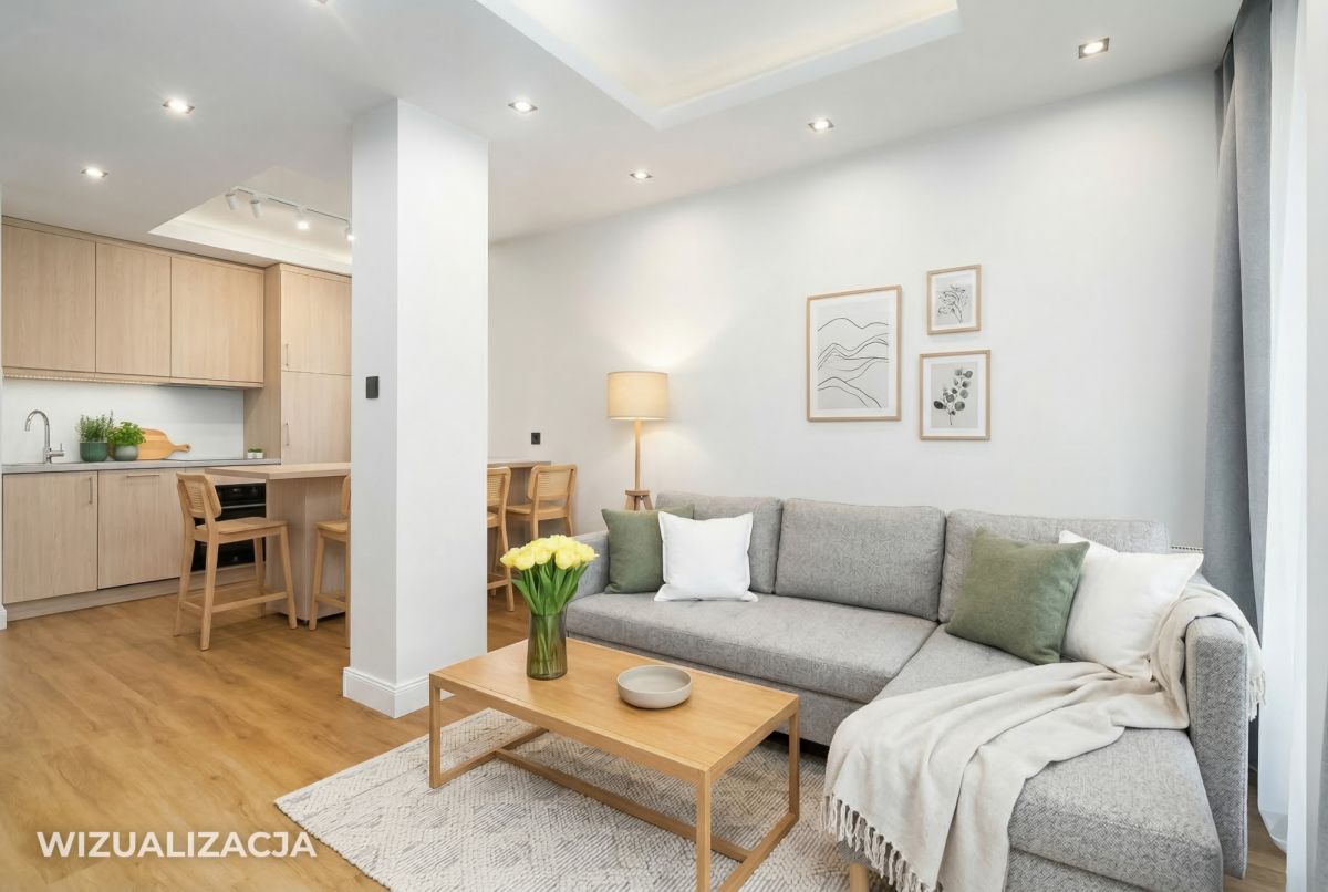 * Słoneczny i przestronny salon z aneksem kuchennym - 28,68 m² z wyjściem na loggię
