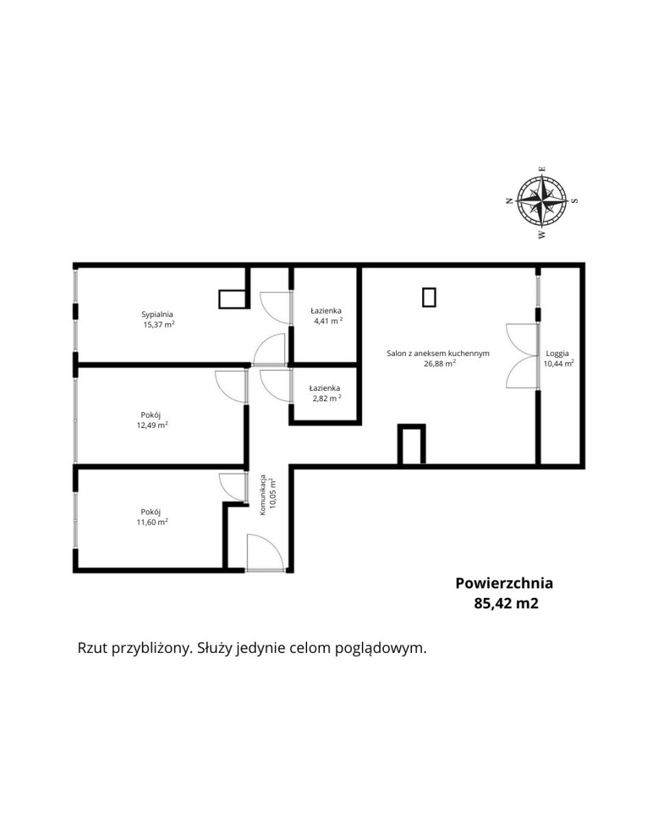 * Układ: 4 pokoje (salon + 3 sypialnie)