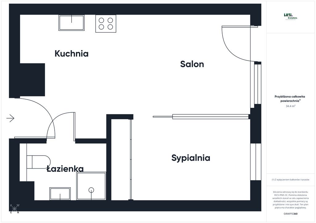 - nigdy wcześniej niezamieszkała kawalerka o powierzchni 34.47 m²