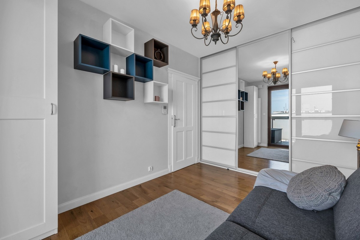 Mieszkanie zostało urządzone w nowoczesnym stylu, przy użyciu materiałów najwyższej jakości. Jasne i przestronne wnętrza stworzone z dbałością o każdy detal zachwycą nawet najbardziej wymagających najemców.