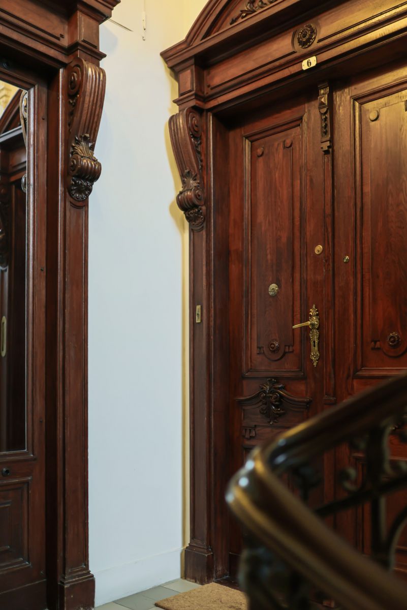 Dwustronny, doskonale doświetlony, z imponującą wysokością sufitów ok. 3,5 m. Oryginalne elementy: piece kaflowe w każdym pokoju, oryginalne drewniane podłogi, dwuskrzydłowe drzwi.